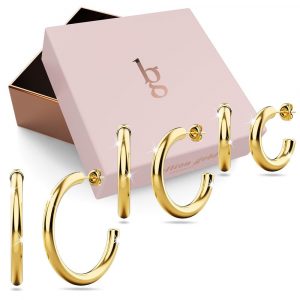 Boxed 3 Pairs of Erica Titanium Earrings Set in Gold