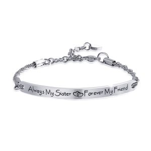 Sisters Forever Inscriptions Rose Gold Bar Bracelet