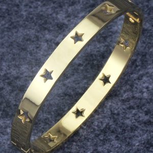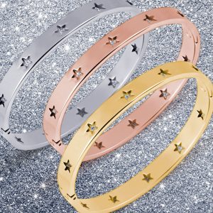 The stars are in your eyes, in your mind, in your dreams. Why not wear them on your wrist? The dazzling Bellatrix Star Bangle is made of 18ct gold layered over titanium steel. This stunning bangle is decorated with a row of twinkling stars that will have you thinking about what magical adventures are just beyond the horizon.