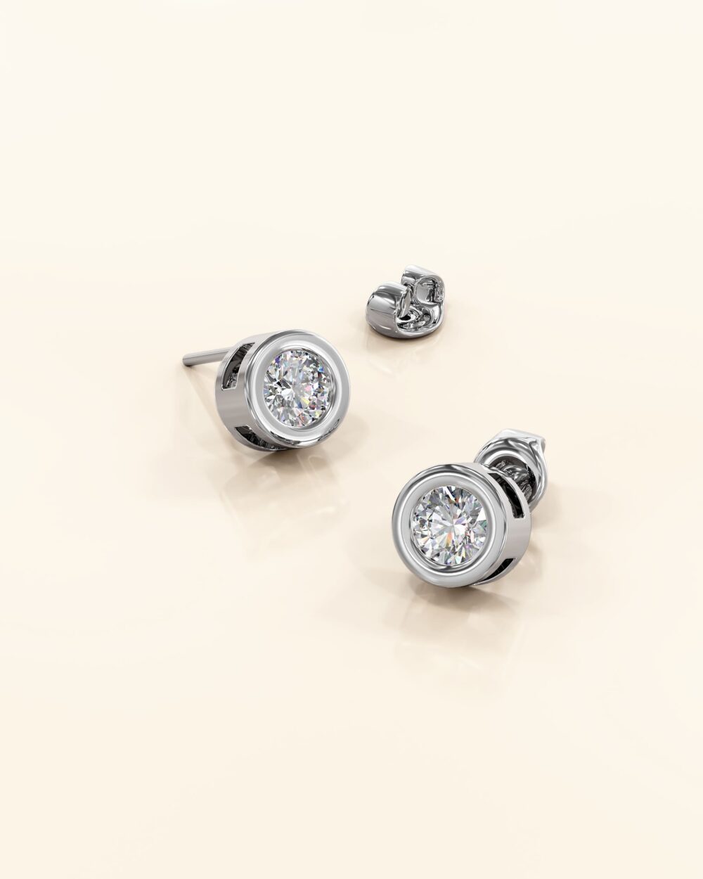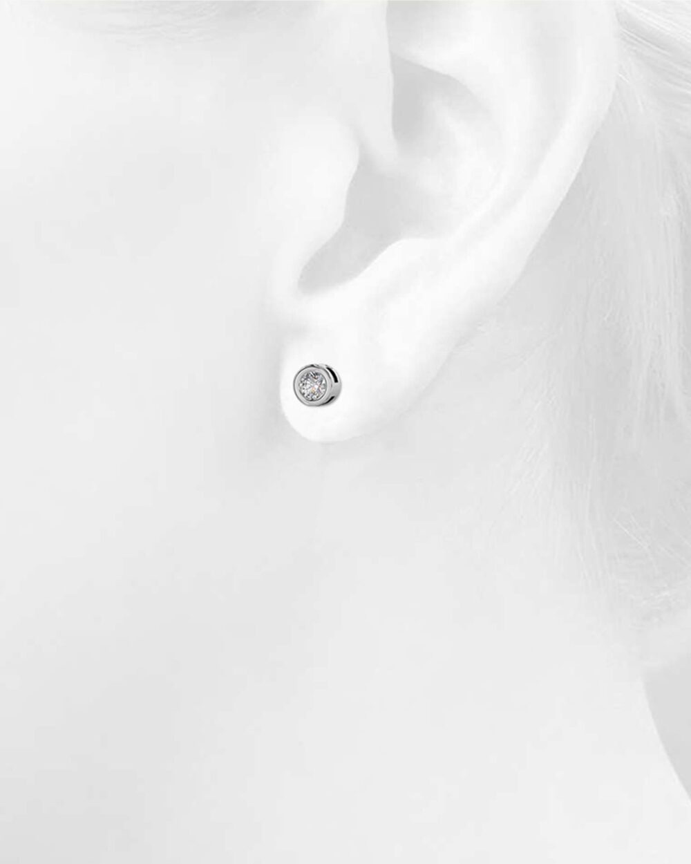 Add sparkle to your casual wear with these bezel studs featuring round cut, bezel-set cubic zirconias. These classic yet bright earrings are crafted from 18K White Gold layered stainless steel. A versitile jewelry that can be worn everyday.