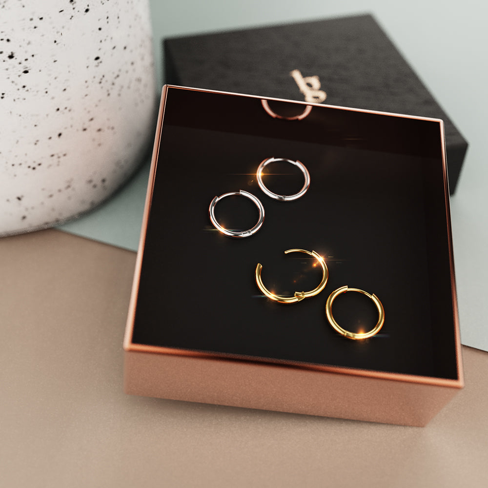 Crafted with Titanium Steel, this stunning jewellery set comes with two pairs of hoop earrings in 18ct Gold and 18ct White Gold with the same design that reveal your sophisticated style. Beautifully packaged in a gift box.