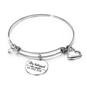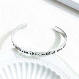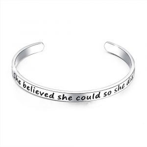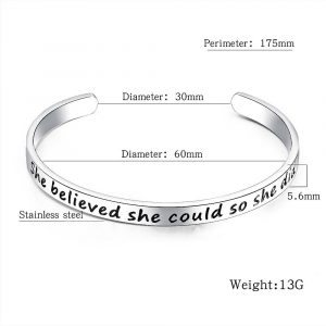 A healthy amount of inspiring words put together on a bangle to boost up your daily motivation and appearance. A set of cuff bangle and charm bangle engraved with positive words.
