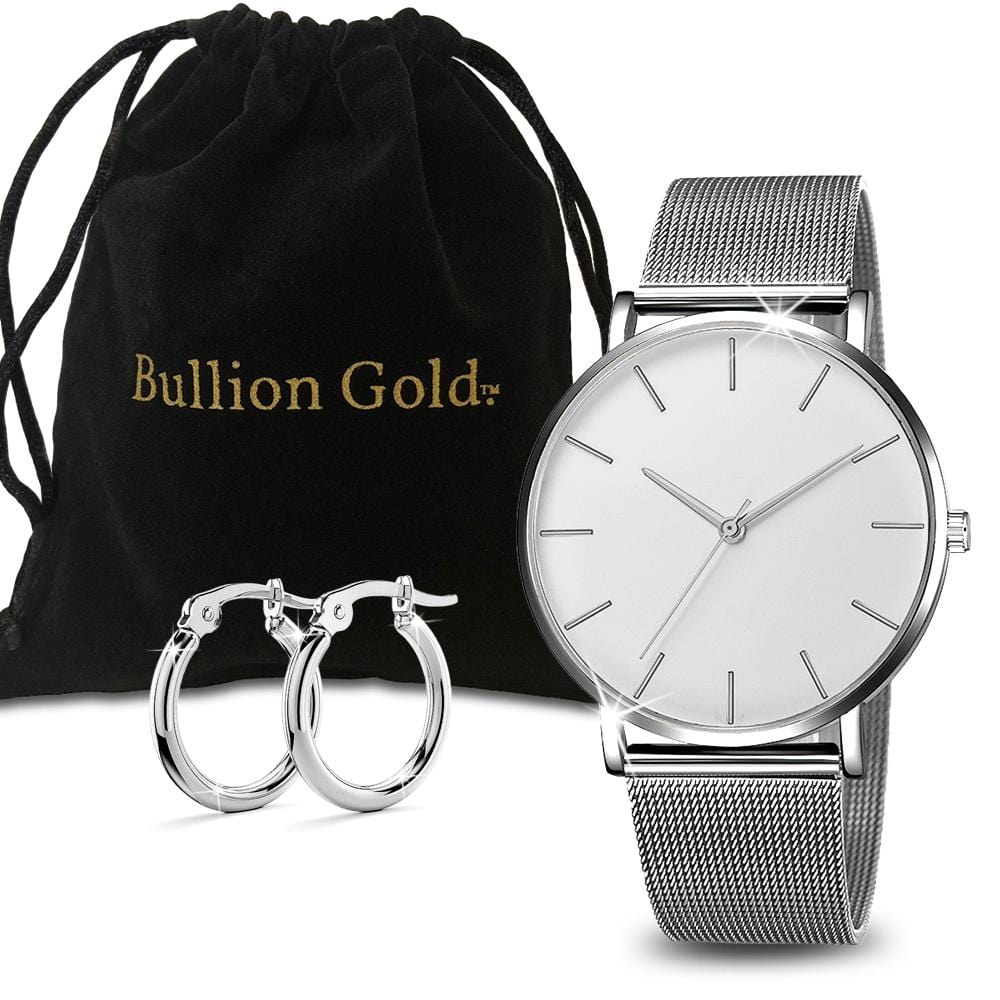 The most up to date analogue glass watch design paired with Hoop White Gold Earrings makes the perfect gift idea