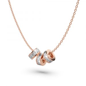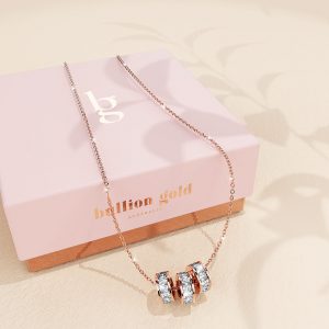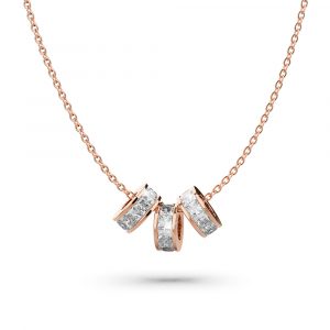 Beautiful stainless steel bracelet layered in 18ct Rose Gold paired with stunningly crafted triple charm slider pendant necklace, encrusted with rows of sparkling square princess cut Zirconias. Whether worn with a dress or a simple tee, this pair will surely elevate your look!