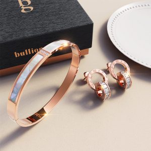 Our Pisces Round Interlock Dangle Rose Gold Layered Earrings are the perfect addition to any outfit. Pair it with the clean and sophisticated Modest Bangle in Rose Gold Layered Stainless Steel to turn heads wherever you go.