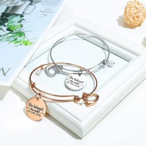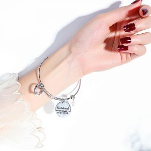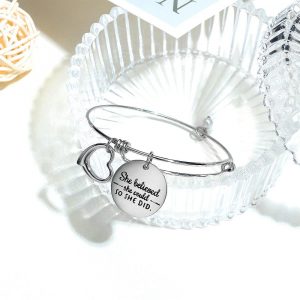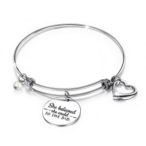 Round charm medallion inscribed paired with a heart charm on a tubular circle bangle. Can be worn with your favorite bangle stack together or as a friendship bracelet