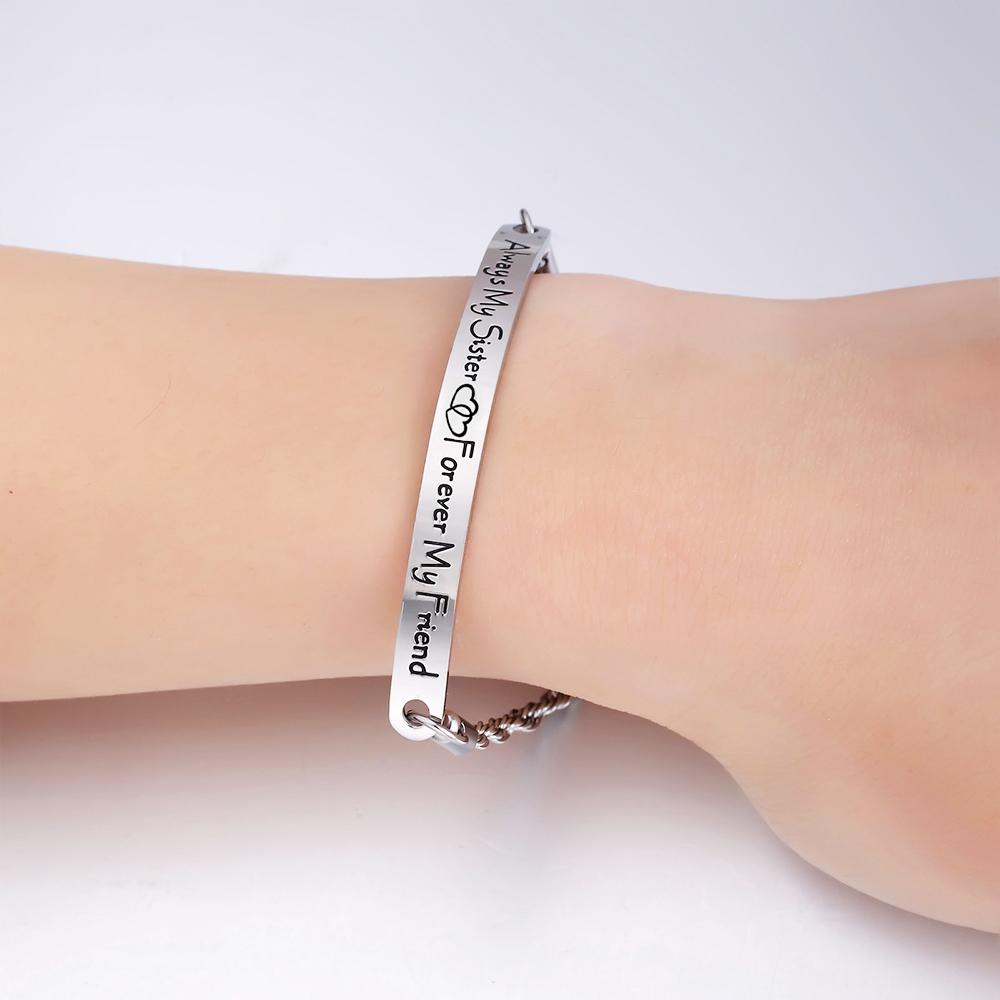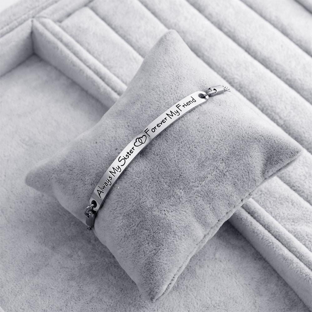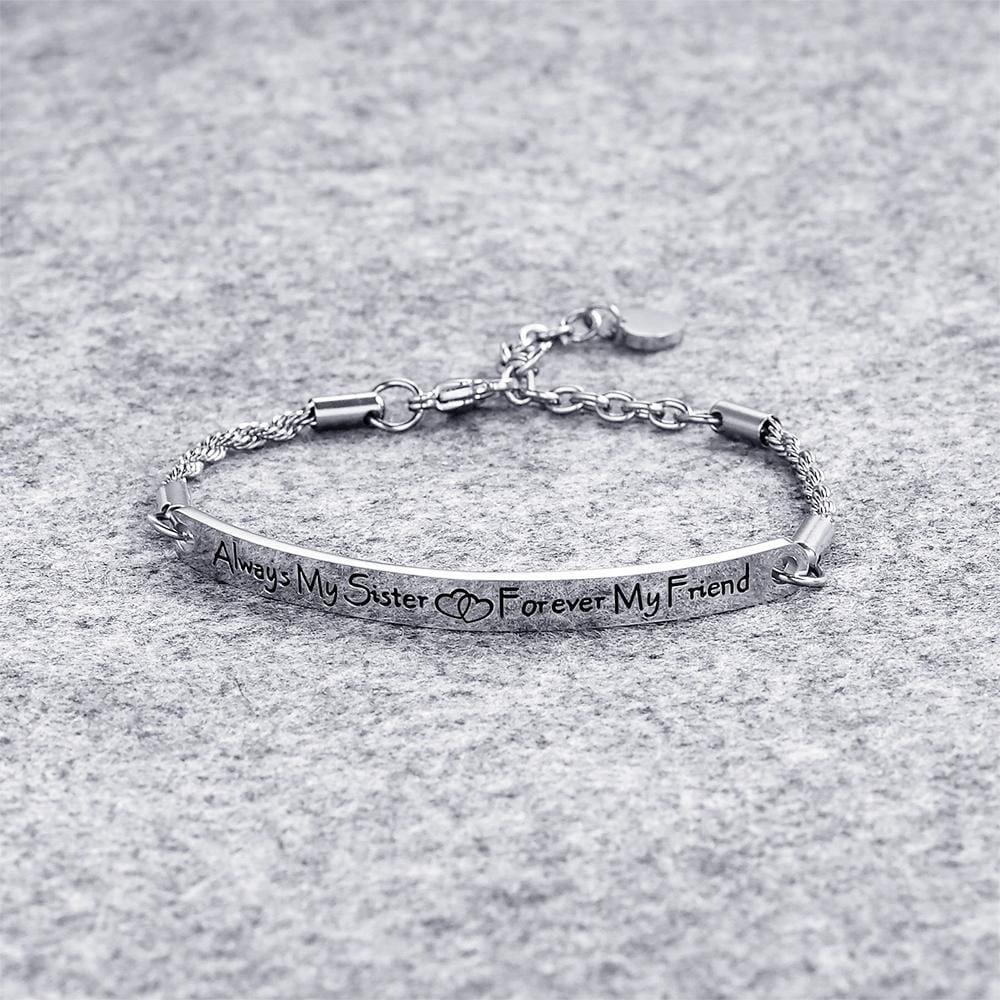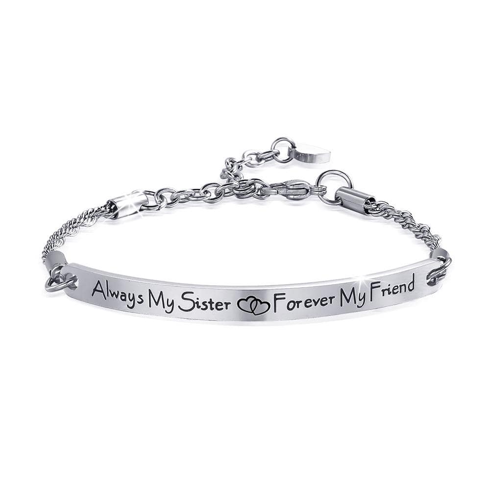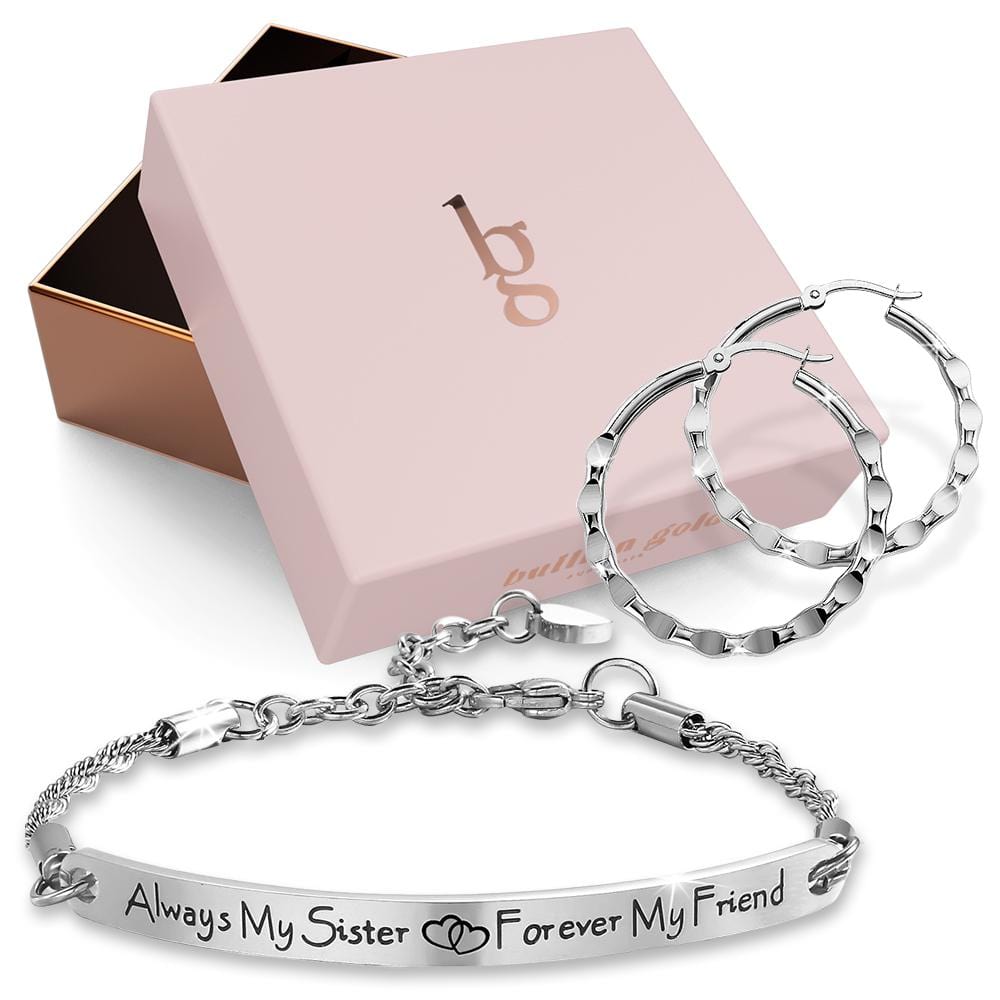 A truly unique gift for a sister you love, this 18ct white gold layered bracelet is engraved with the words “Always my sister”. The bracelet has a secure clasp and is easily adjustable to fit all wrists. Give this beautiful piece of jewellery to your sister on her graduation day, for Christmas or simply as a special present because she’s your best friend in the world! Comes complete with a pair of matching earrings and beautifully packaged in a gift box.