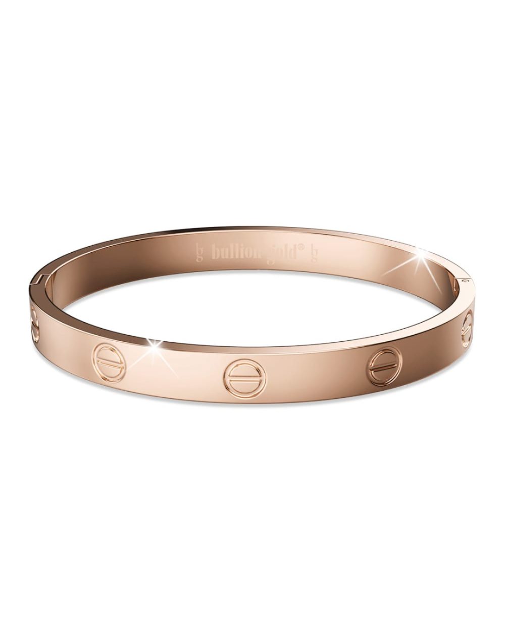 Presenting Bullion Gold’s latest wristwear, the Carmello Bangle. Beautifully layered with an 18ct Rose Gold plating, this breathtaking stainless steel bangle will make anyone fall with envy. Featuring a secure side hinged locking closure, the Carmello Bangle can be paired with any outfit you desire. Buy it for yourself or gift it to others, you can never go wrong with this bangle.