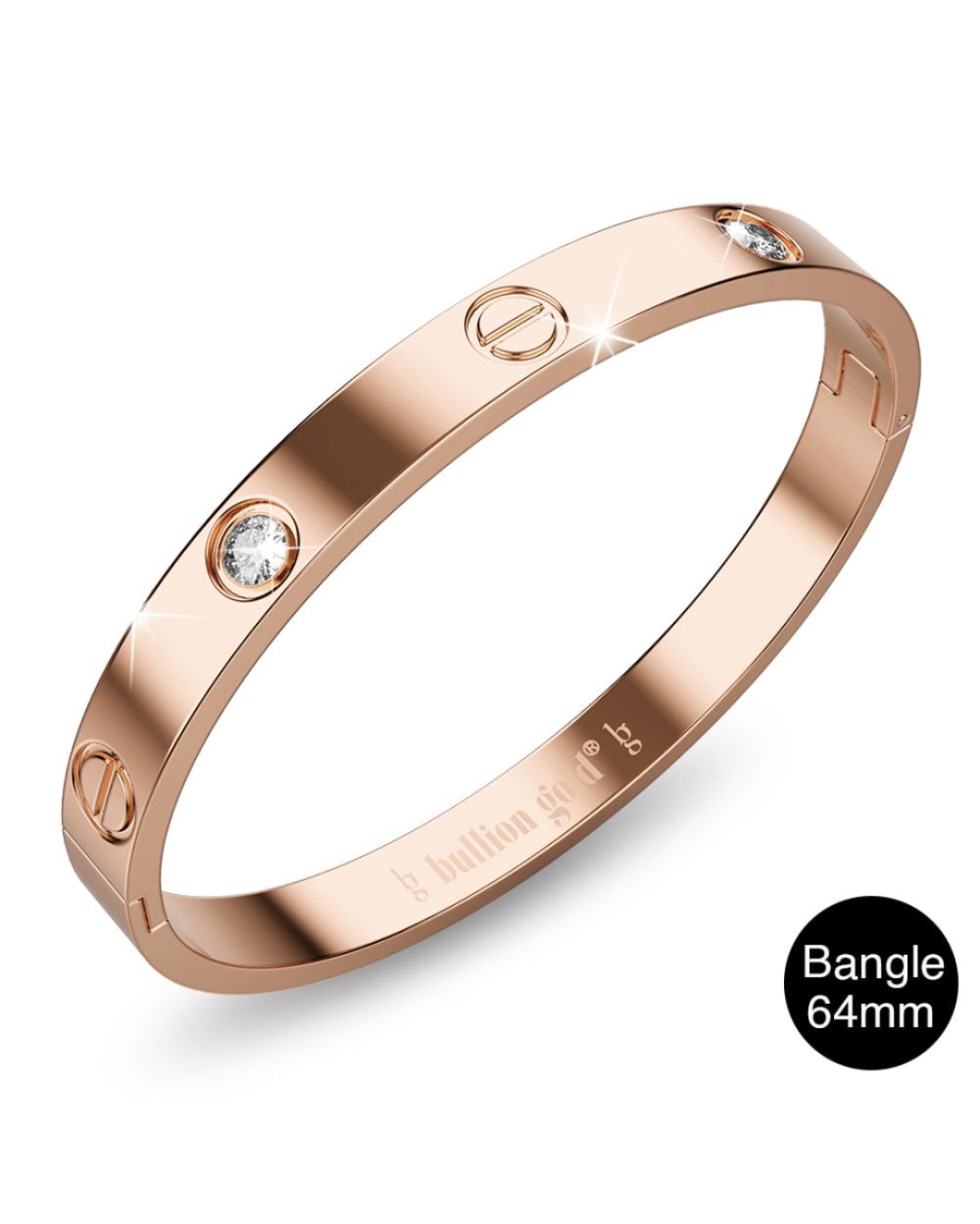 Our Carrie Stainless Steel Bangle is the very definition of the perfect bangle for everyday wear. This one-of-a-kind bangle is made of high quality stainless steel, layered with a luxurious 18ct Rose Gold plating. Apart from its secure side hinged locking closure, this bangle is beautifully adorned with cubic zirconias for that extra touch of everlasting glam.