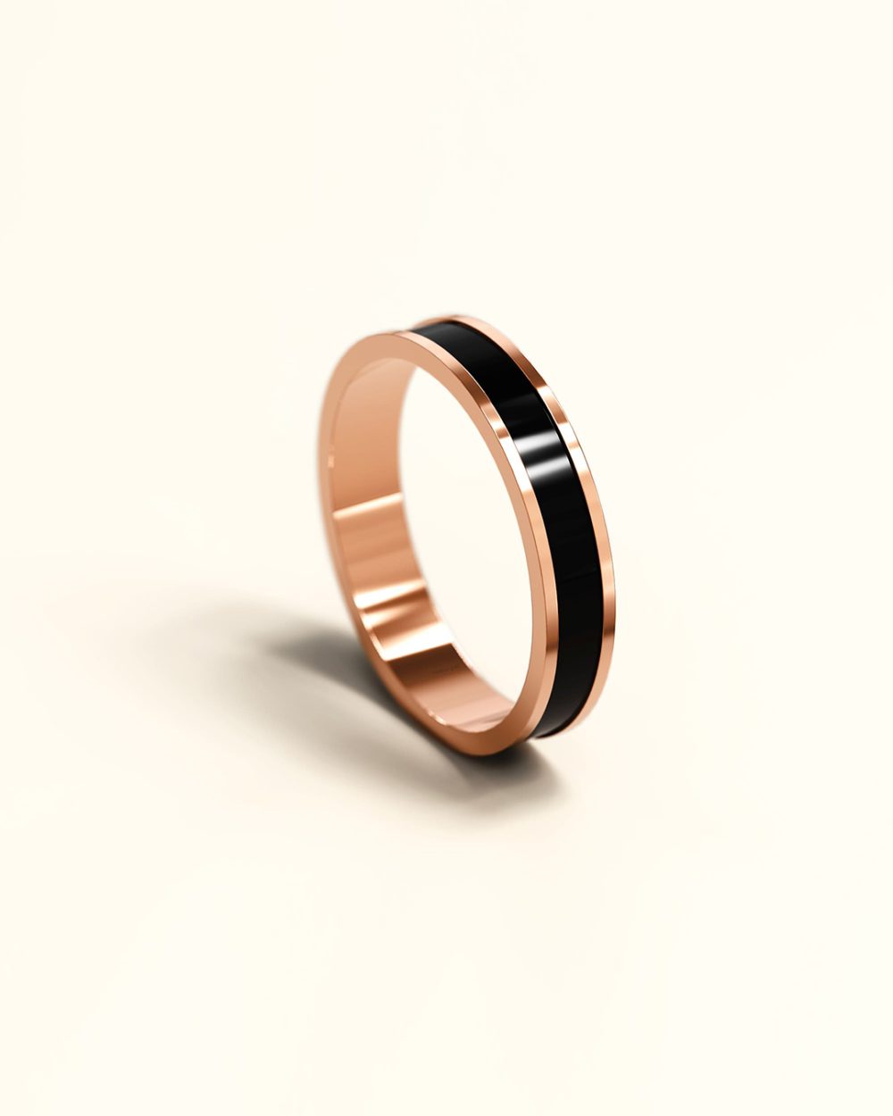 Double your style with our Ceres Timeless Ring Black Enamel Ring in Rose Gold. This 18k rose-plated ring has been decorated with black enamel, for a cool, contrasting finish. The perfect colour to match your everyday mood. Reach a level of personalisation you love by connecting this statement stacking ring to your other favourites. Ready to boost your style and give yourself a mini glow up?