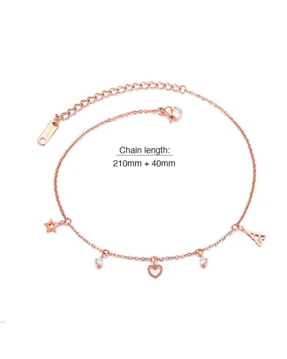 This wonderful anklet is high-quality Rose gold plated. The perfect accessory for the elegant modern woman. The cute piece that can be worn on any occasion. Add an aura of grace and sparkle to every ensemble with this lovely anklet. Perfect for both yourself or as a special gift.