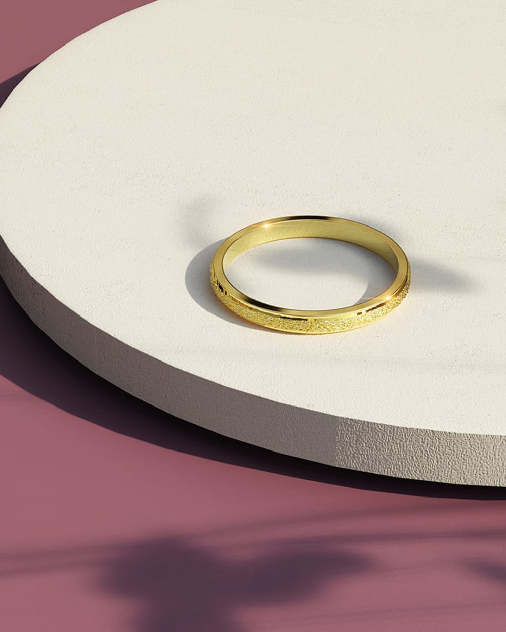 Cozy your fingers in our Deva Glitter Textured Stacker Ring, made with gold-plated stainless steel, and adorned with a glitter layer. You know that friend who’s got every layering trick in the book? The one who always manages to bring their style game to the next level? This is her secret weapon. Connect it to any of our other stacking rings and create a personalised collection you love.