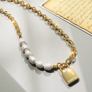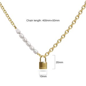 Our new collection of Elinor Freshwater Baroque Pearls Lock-Pendant Necklace is here to take your jewellery game to the next level. Complemented by row of freshwater baroque pearls and a lock pendant, this piece brings you a flattering and stunning look.
