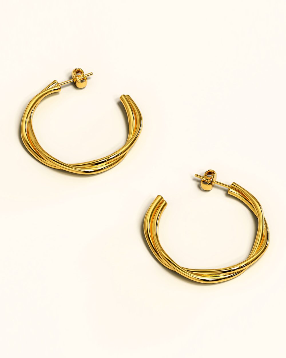 Elsa is a stunning pair of gold plated hoop earrings. These hoops are made from titanium steel and finished with a high-quality 18ct gold plating to give the ultimate luxury collection. The titanium steel creates a light weight feel, making these hoops comfortable to wear for extended amounts of time.
