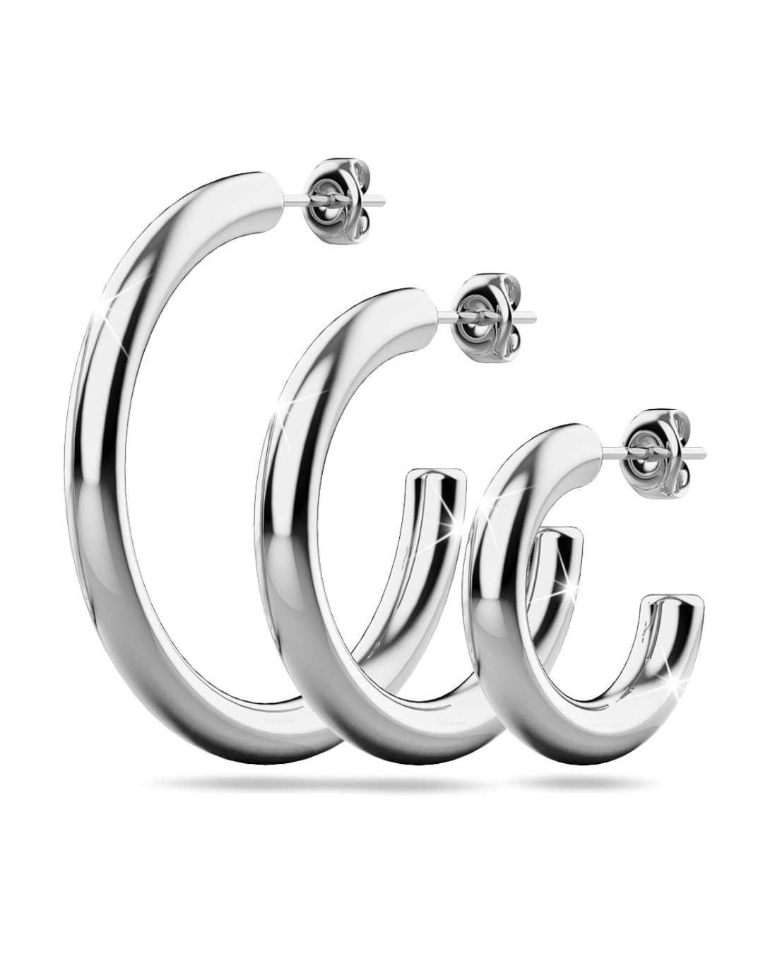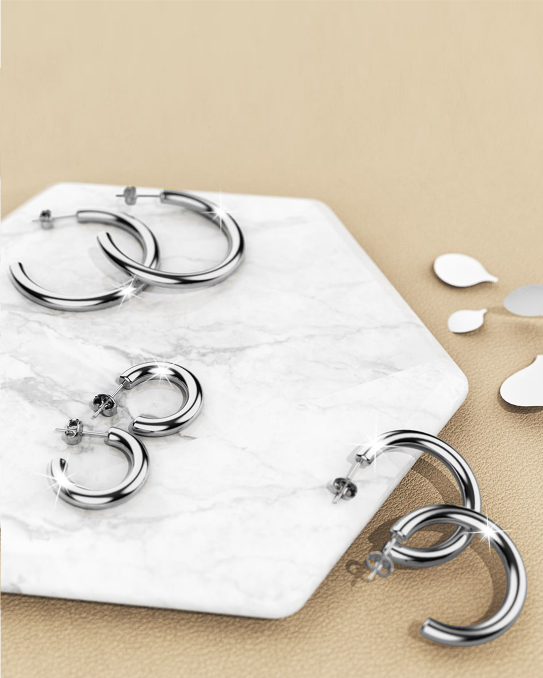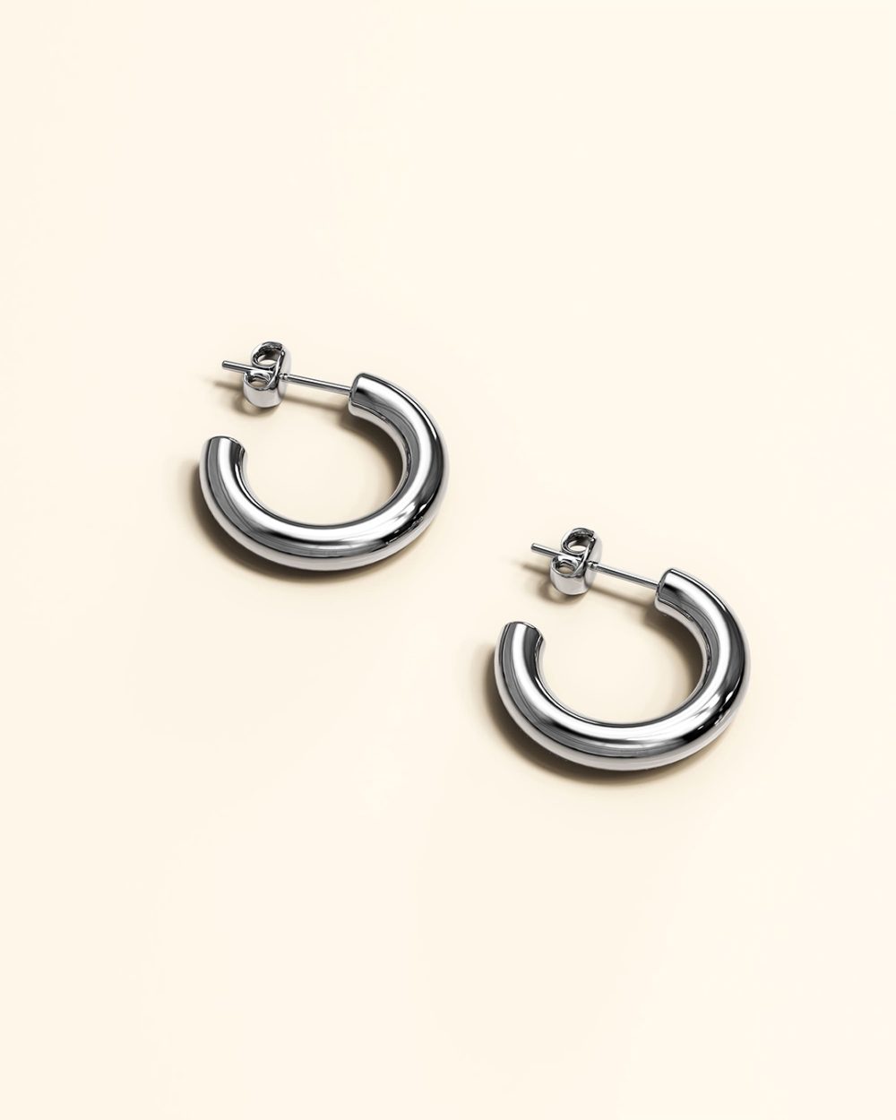 These dainty Erica White Gold Titanium Hoop Earrings are crafted from high quality titanium steel and layered with a luxurious white gold plating, creating a glimmering finish that is sure to make heads turn. Your outfit will be the talk of the town when you add these to your jewellery collection.