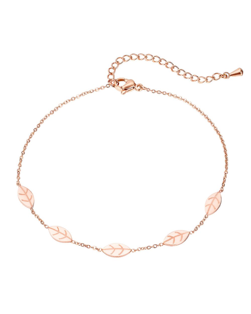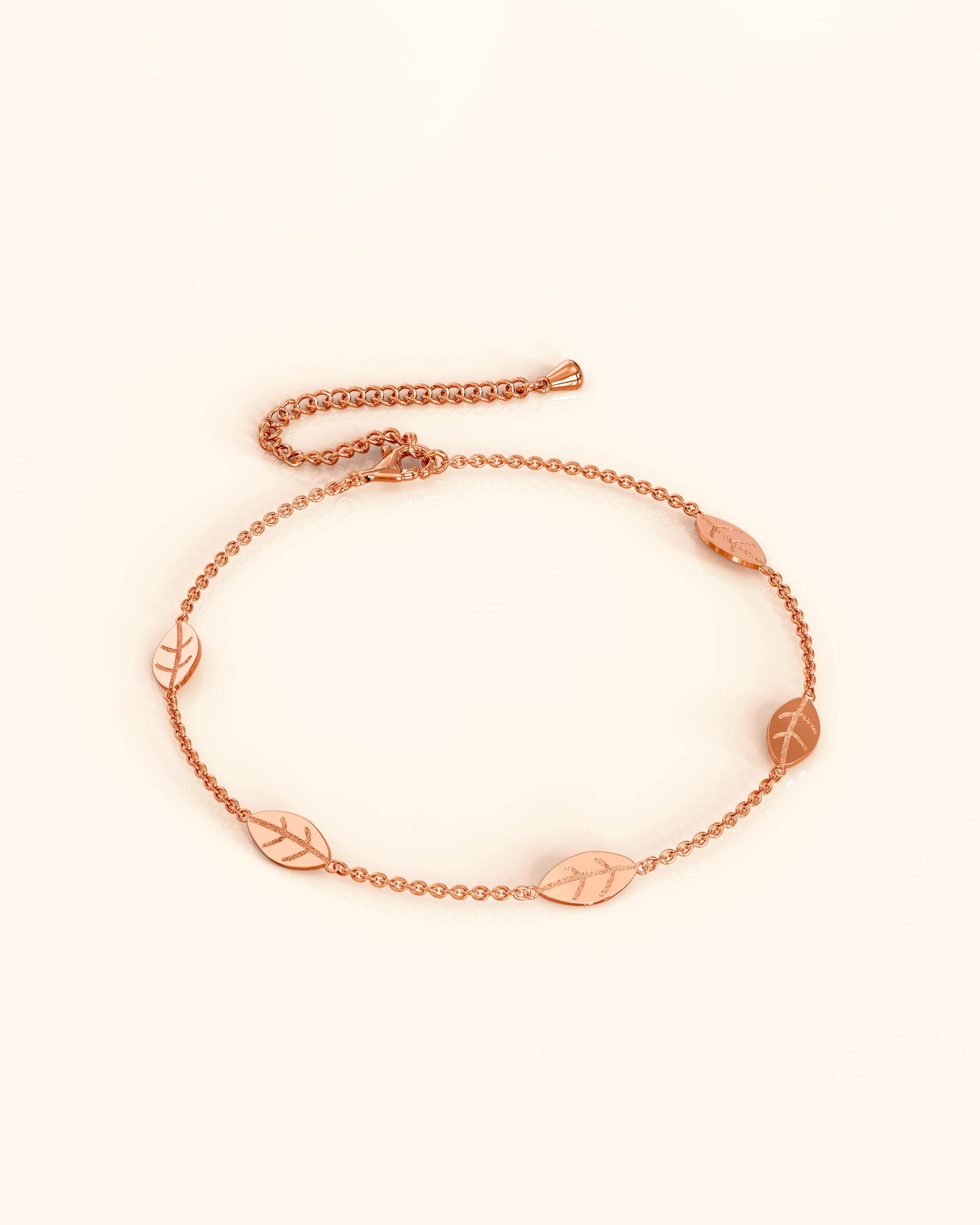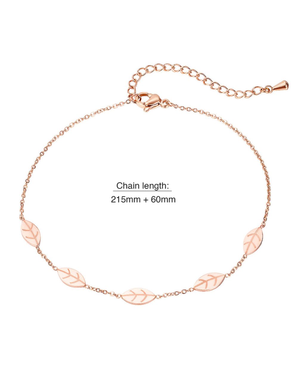 Simply strung neatly minimalist design anklet with beautiful rose gold leave petals brings out the nature vibe in you.
