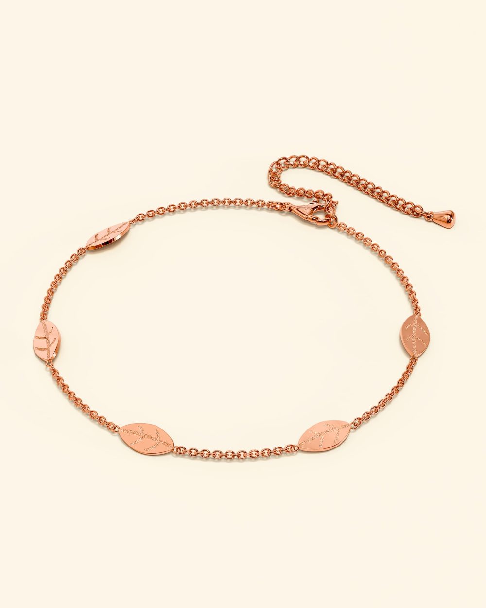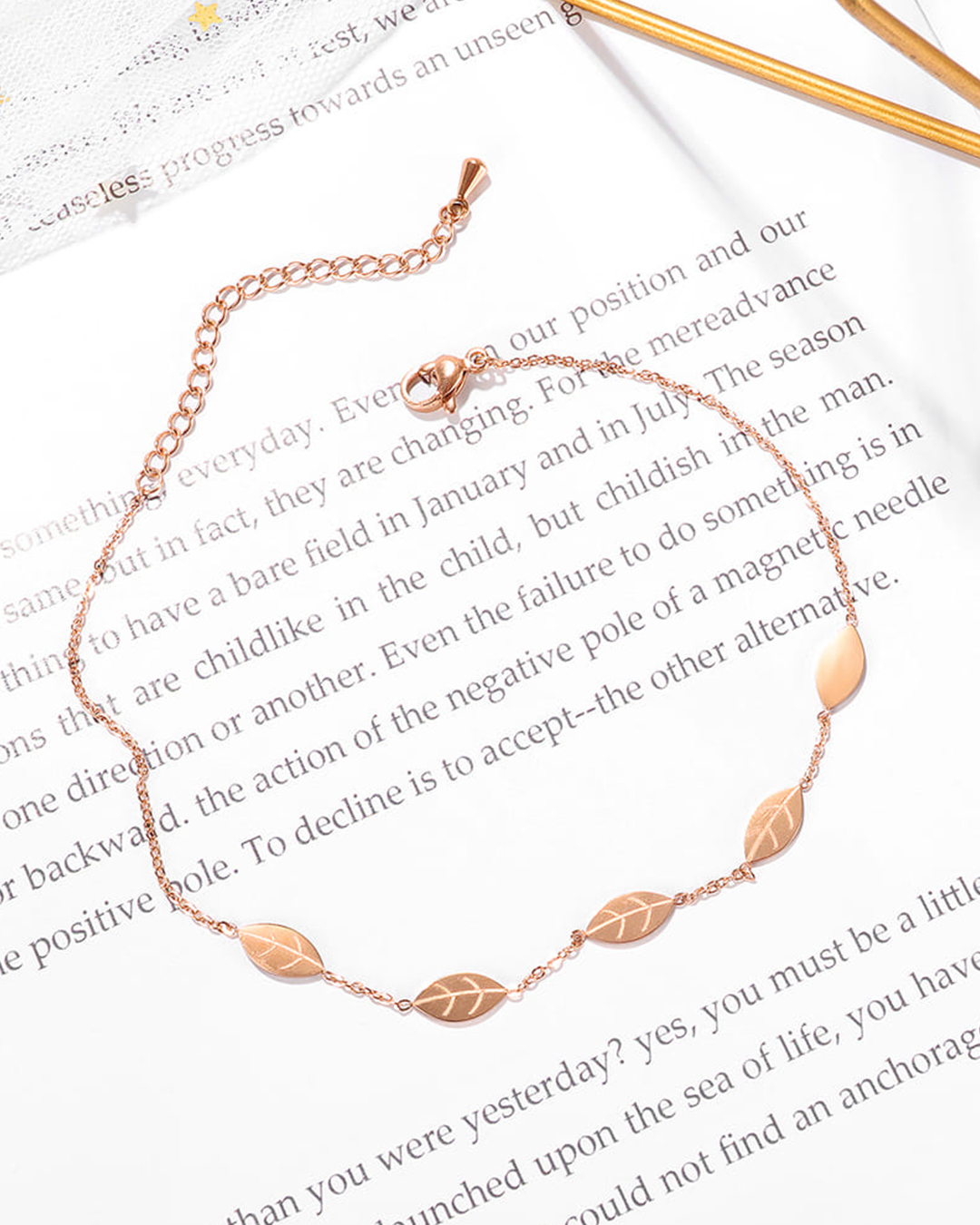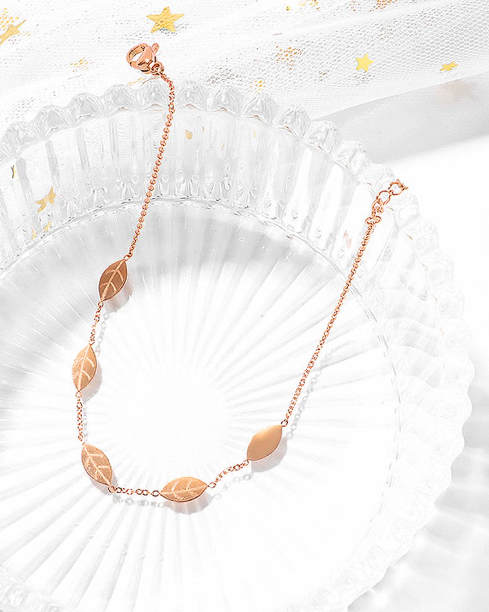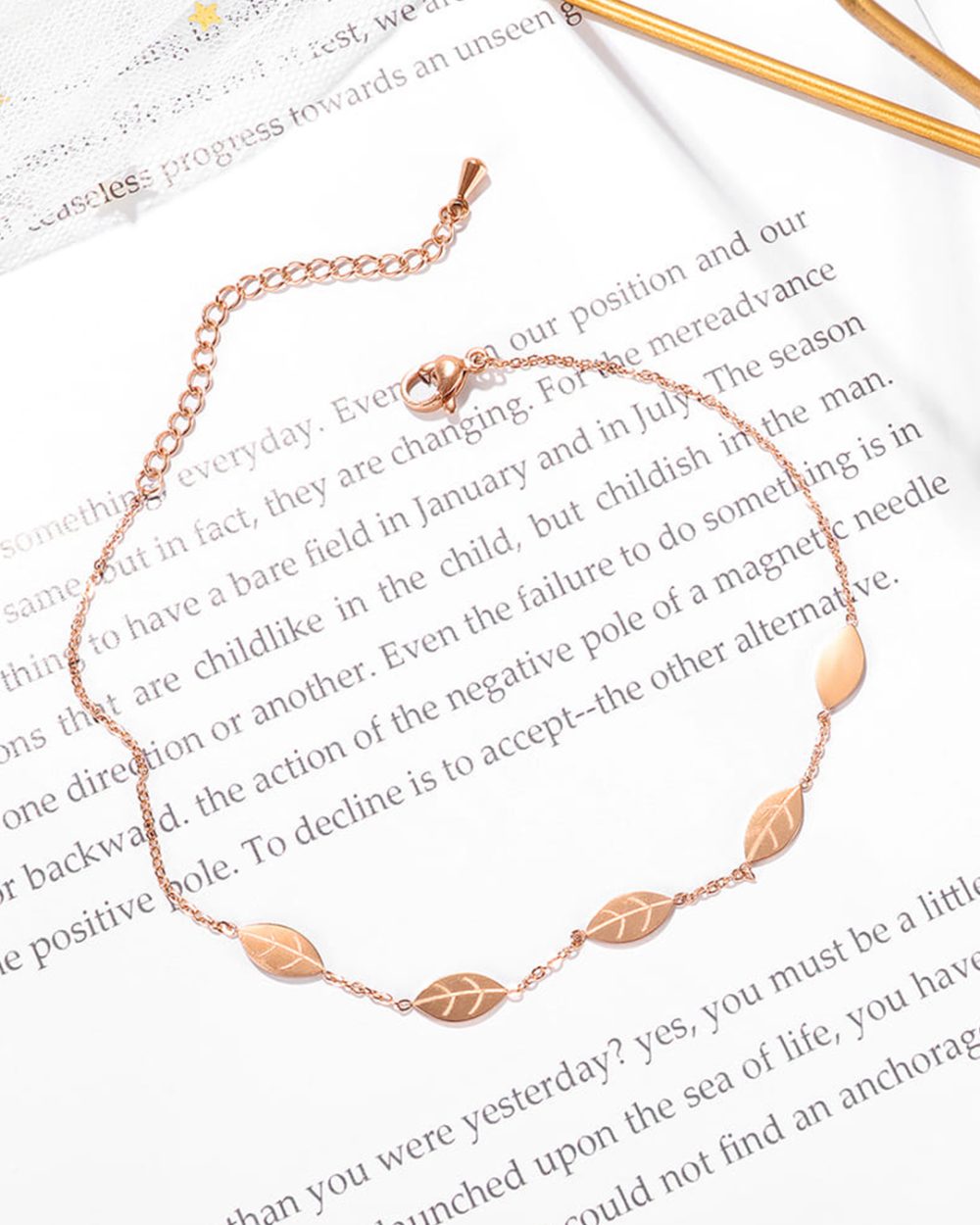 Simply strung neatly minimalist design anklet with beautiful rose gold leave petals brings out the nature vibe in you.