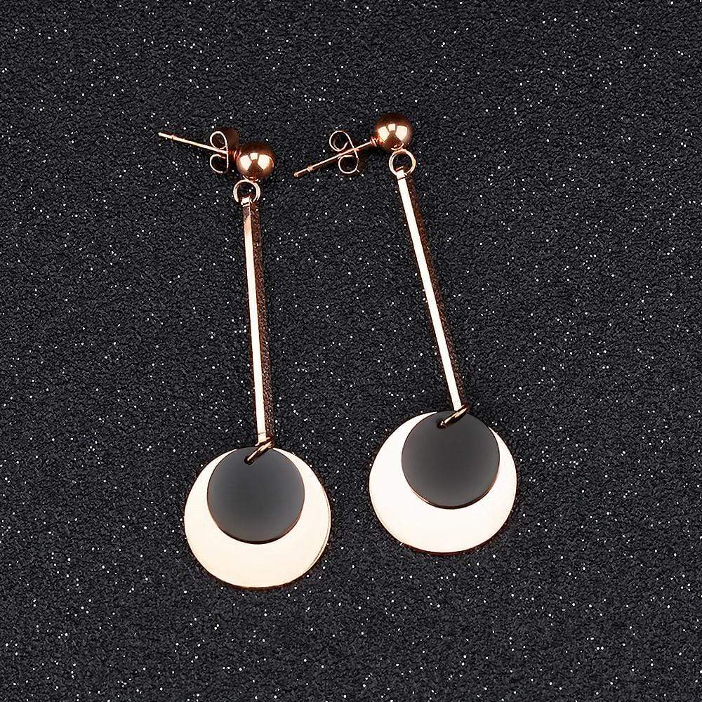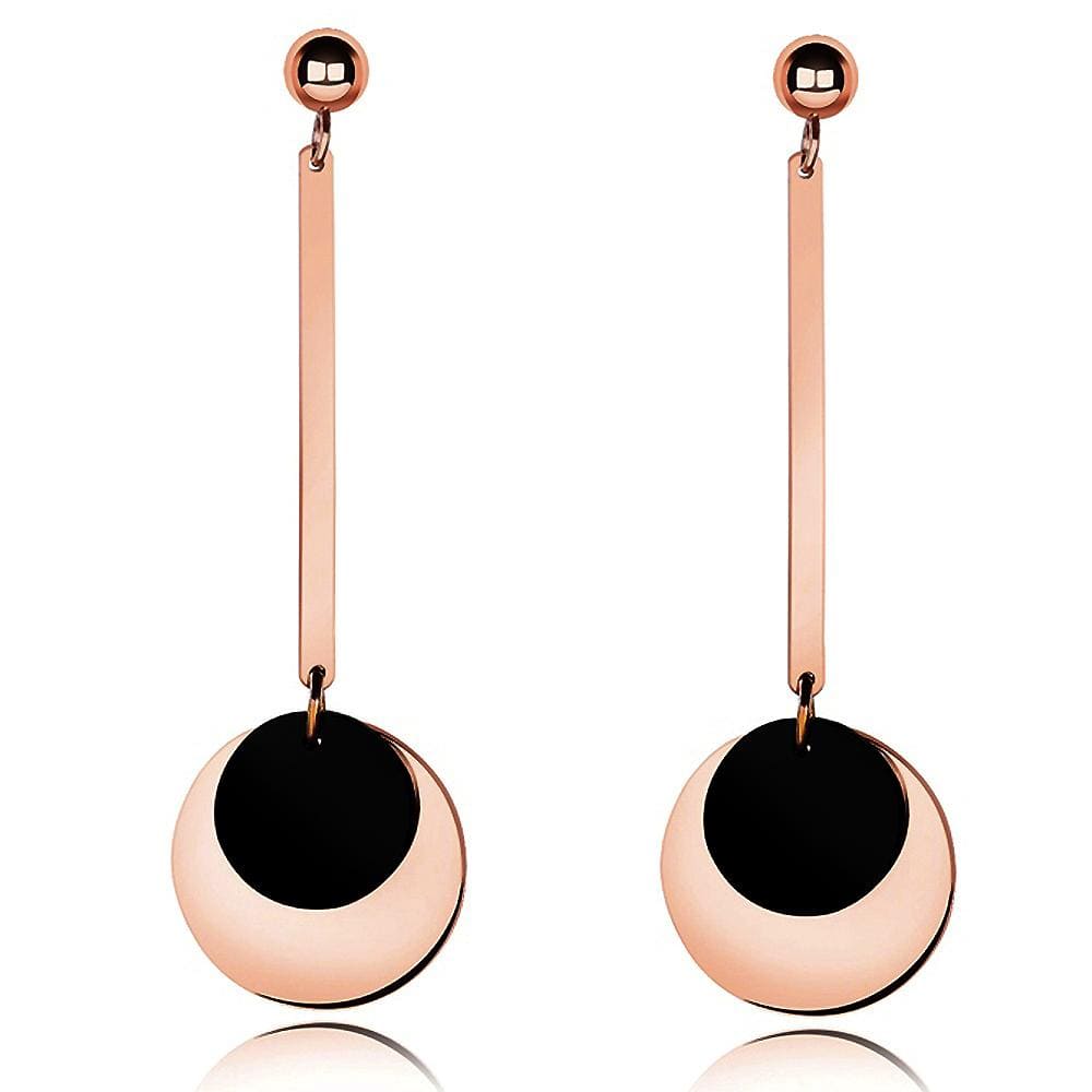 These charming dangle earrings make an outstanding complement to casual styles. Featuring a gleaming round charm crafted of stainless steel layered with 18K Rose Gold, this pleasing jewellery are versatile enough for both day and evening attire.