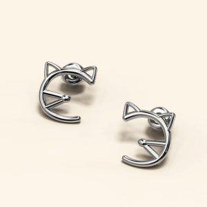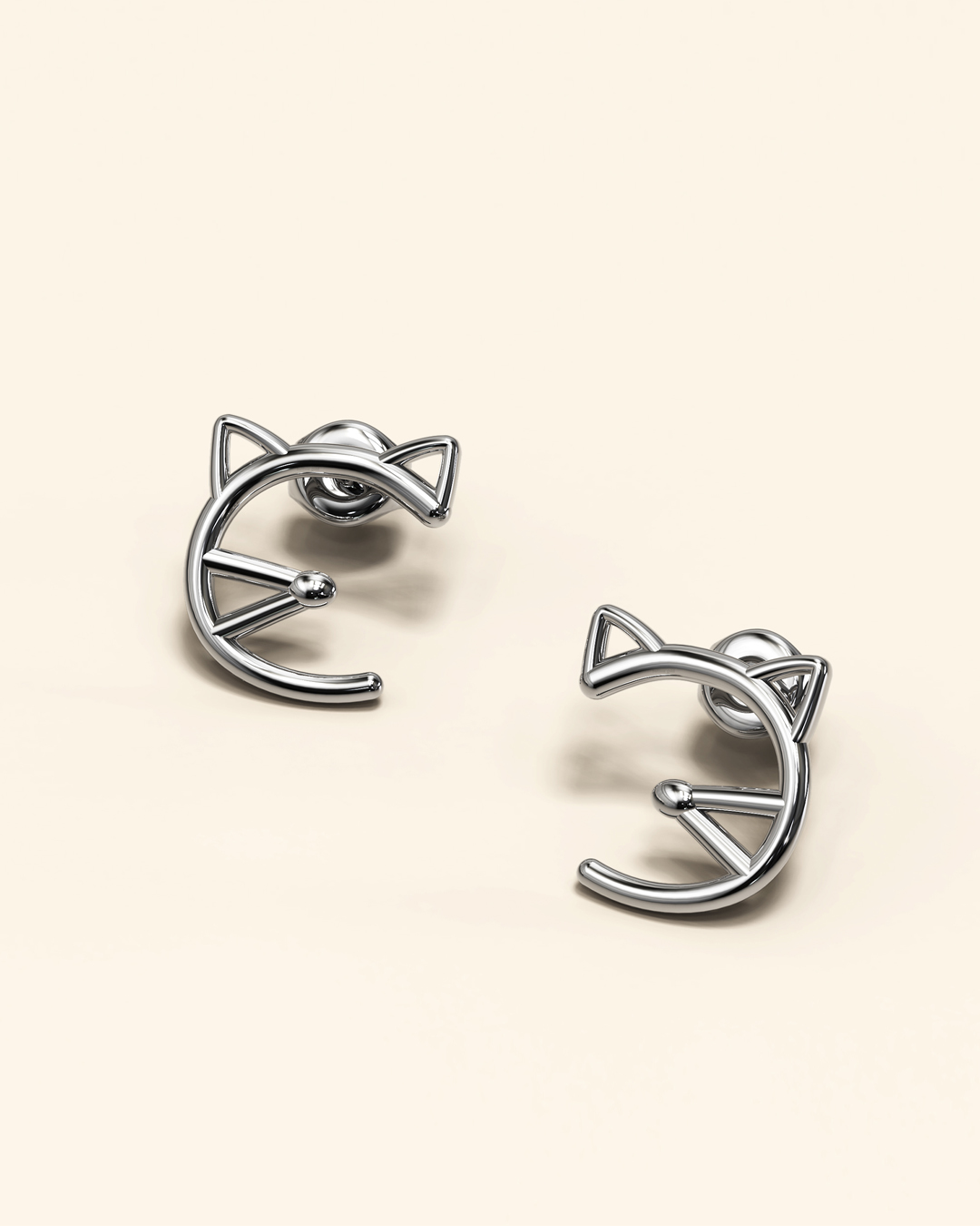 Fierce and strong like a feline. A cute dainty cat face in white gold layered. Excellent for cat and animal lovers.