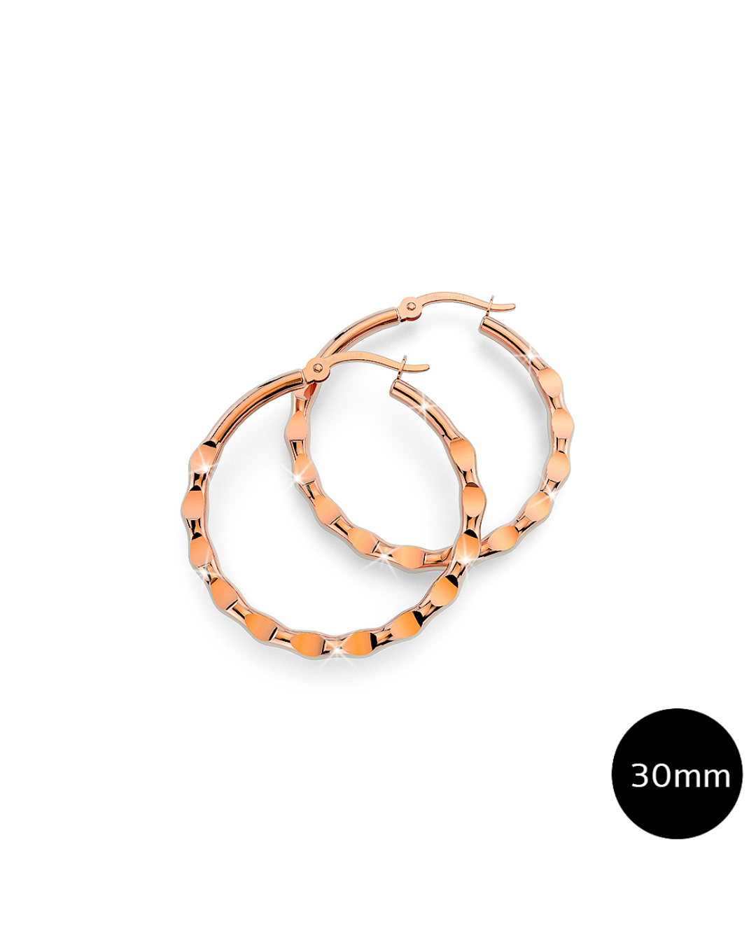 Flaunt this sleek hammered texture hoop crafted of 18ct rose gold layered stainless steel. Each earring is secured with hinged post clasps. A classy piece that will bring out the sophisticated side of you.