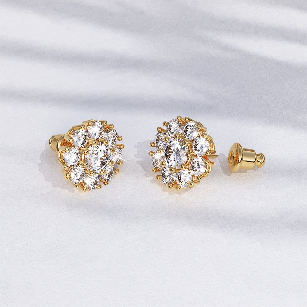 The Filigree Zircon Gold Stud Earrings are simple but elegant. Crafted with zirconia crystals and 18ct Gold Layered copper, they are the perfect accessory for any outfit. Wear them with a white tee and skinny jeans for a casual weekend look, or dress up with a fitted dress and heels for an evening out.