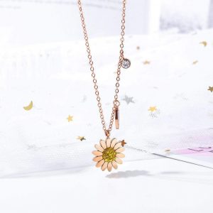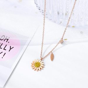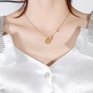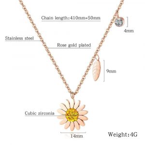 A fresh look with a singular Fresh Sunflower pendent with attached miniature leaf charm. Adorn with beautiful cubic zirconia in yellow and clear.
