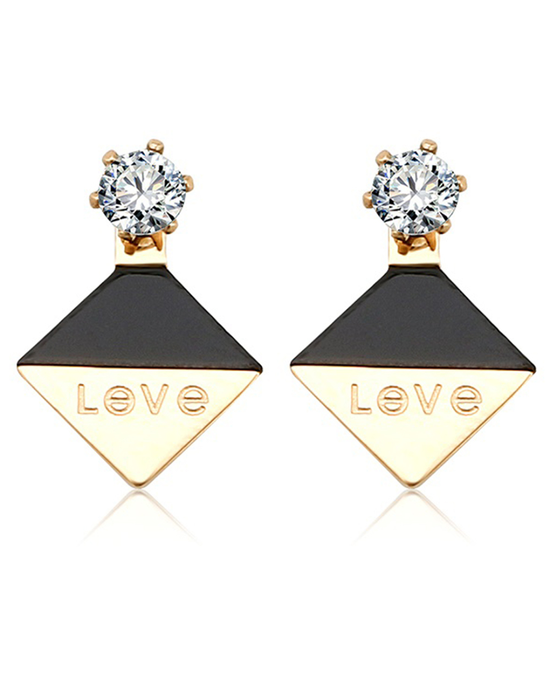 Wear these delicate stud earrings for a subtle yet glorious appeal. Unique with its love inscription and sparkling zirconia accent, these stud earrings give you both modern and feminine look. This gorgeous accessory is made of 18K Gold layered stainless steel. Perfect for both yourself or as a special gift.