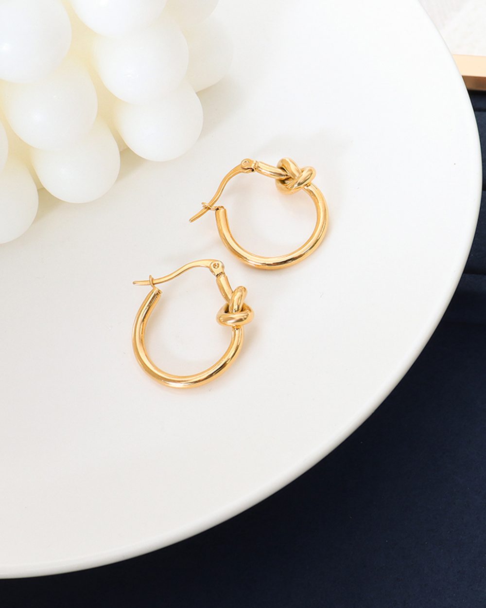 There’s a certain charm, or shall we say magic, in the knot. Its endless complexity with its two ends intertwined is part of what makes it so enchanting. It’s no wonder why it is used as a symbol of friendship and love. Hence why this pair of golden hoop earrings are so brilliantly beautiful. Safe on sensitive skin due to the 18ct Gold layered over hypoallergenic Titanium Steel base.