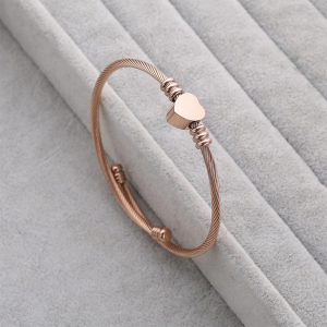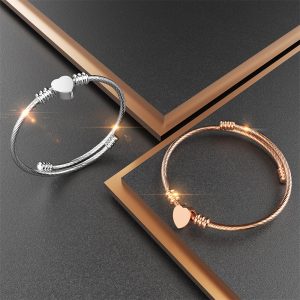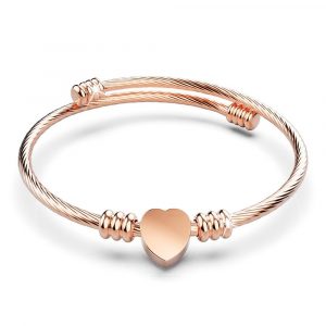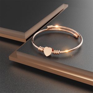 This truly is a statement piece that will go with anything. Wear it with denim or your favourite dress. This bangle features an open heart motif, stretch spiral coil and 18ct Rose Gold finish bangle. Perfect for the woman who wants to make a statement while maintaining the perfect balance of sophistication and modernity. Pair this bangle with the matching ring (sold separately) for an elevated finish. This stunning piece is crafted from titanium steel, which means that it’s both hypoallergenic and nonreactive to most skin types, making it perfect for sensitive skin types.