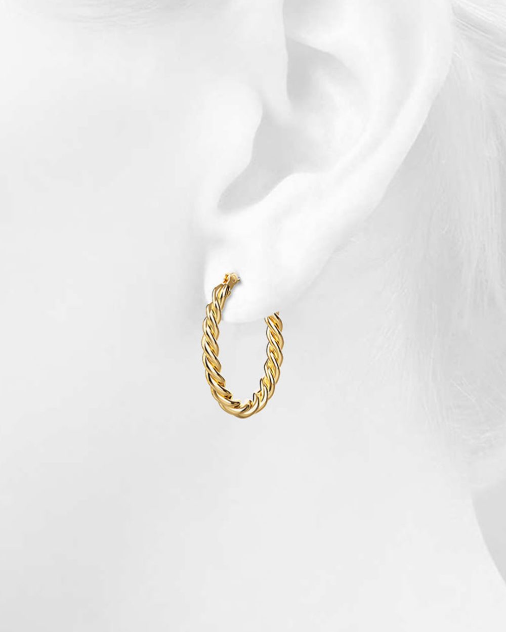These earrings will add a touch of luxury and modernity to any outfit. The intertwining braids are made of titanium steel layered with 18ct Gold, giving them that shiny golden finish. They’re perfect for dressing up or down any look, from work clothes to party dresses.