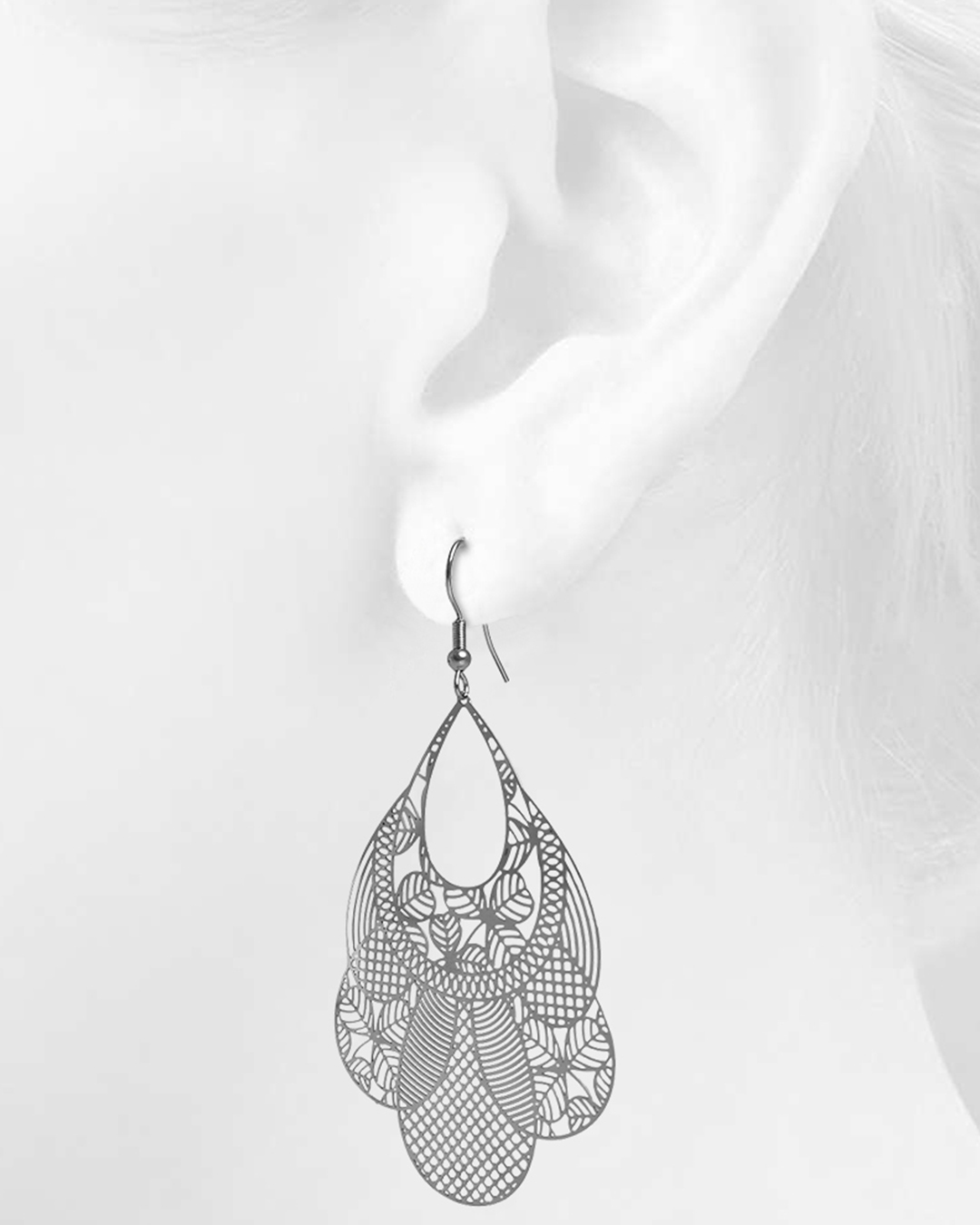 Right on trend! This pair of delicate laser etched earrings in incredibly detailed and eye catching. A lightweight piece, great for any occasion and ensembles.