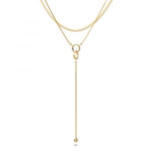 With its staggered layers of shining 18ct Gold plating, this ring necklace