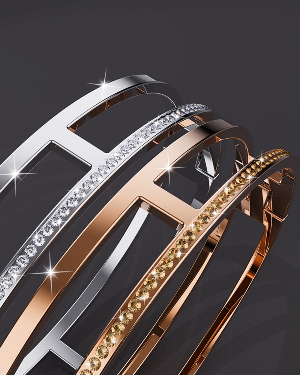 A beautiful piece with a slightly edgy edge, the Lucky Dimension Cuff Bangle was made of a luxurious 18ct Rose Gold layered stainless steel. The sparkling cubic zirconias adorned on this bangle adds an elegant and modern twist to the traditional bracelet design. This cuff bangle features a side hinged locking closure for easy wearing and removal. Add this masterpiece to your jewellery collection now for that instant touch of class to your wardrobe!