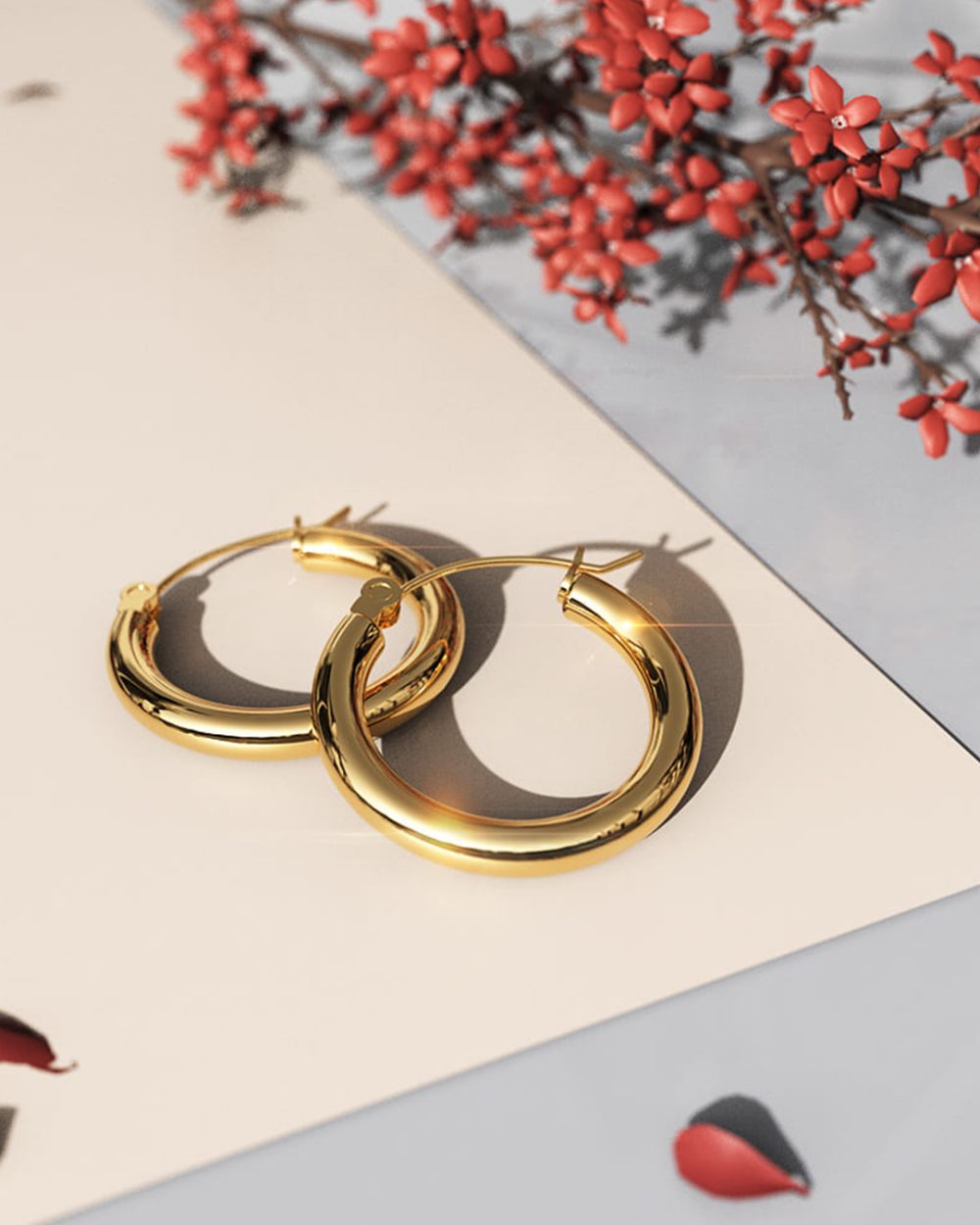 Exquisitely designed with a layer of luxurious 18ct Gold, these earrings are perfect for the modern woman. The first-rate titanium steel makes them sturdy and long-lasting, whist the gold layer adds a touch of luxury to your overall look.