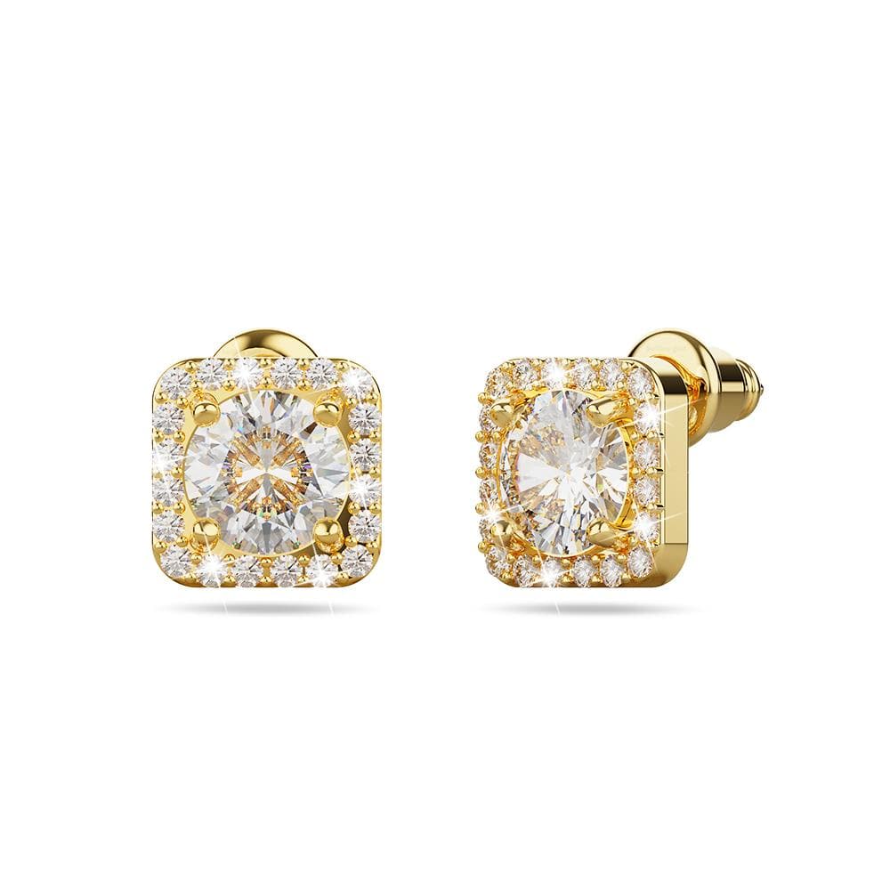Meissa Cube Gold Stud Earrings, an eye-catching pair of earrings that will leave you feeling bedazzled. This pair of stud earrings features a bold designer look at a fraction of the cost. They would be a perfect match for your favourite dress or dressy top. Adorned with stunning zirconia crystals, this women’s jewellery set is also layered with 18ct gold copper, making it durable and extra sparkly. Perfect for that ultra-chic look you were going for!