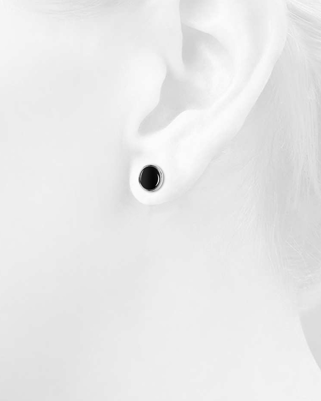 Enhance your look with these classic 10mm studs made of 18ct white gold layered stainless steel with black painted enamel. Wear this comfy pair anytime, anywhere!