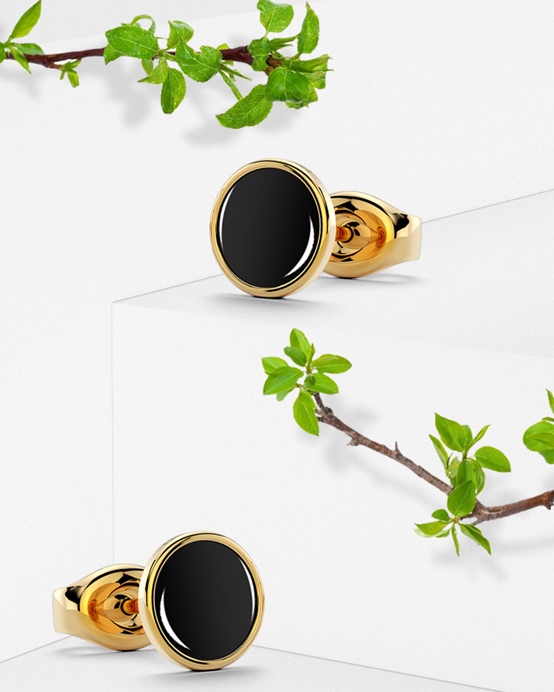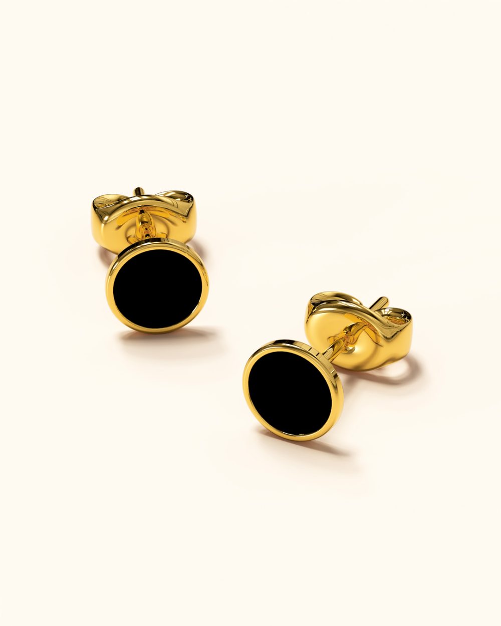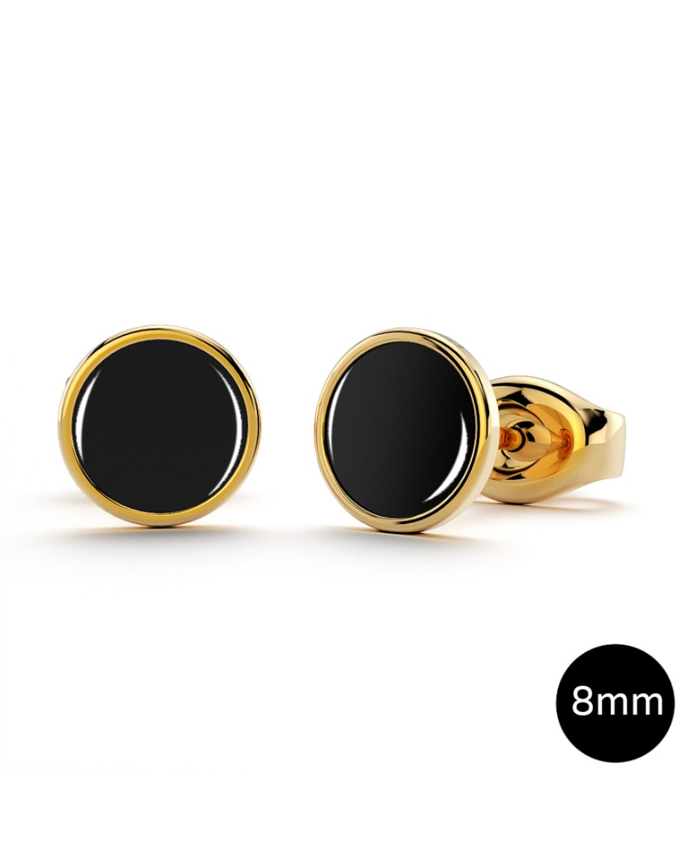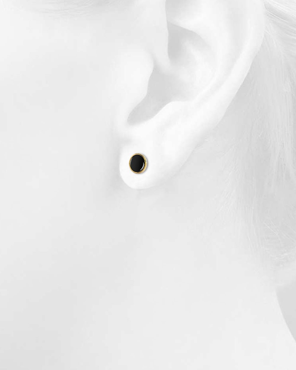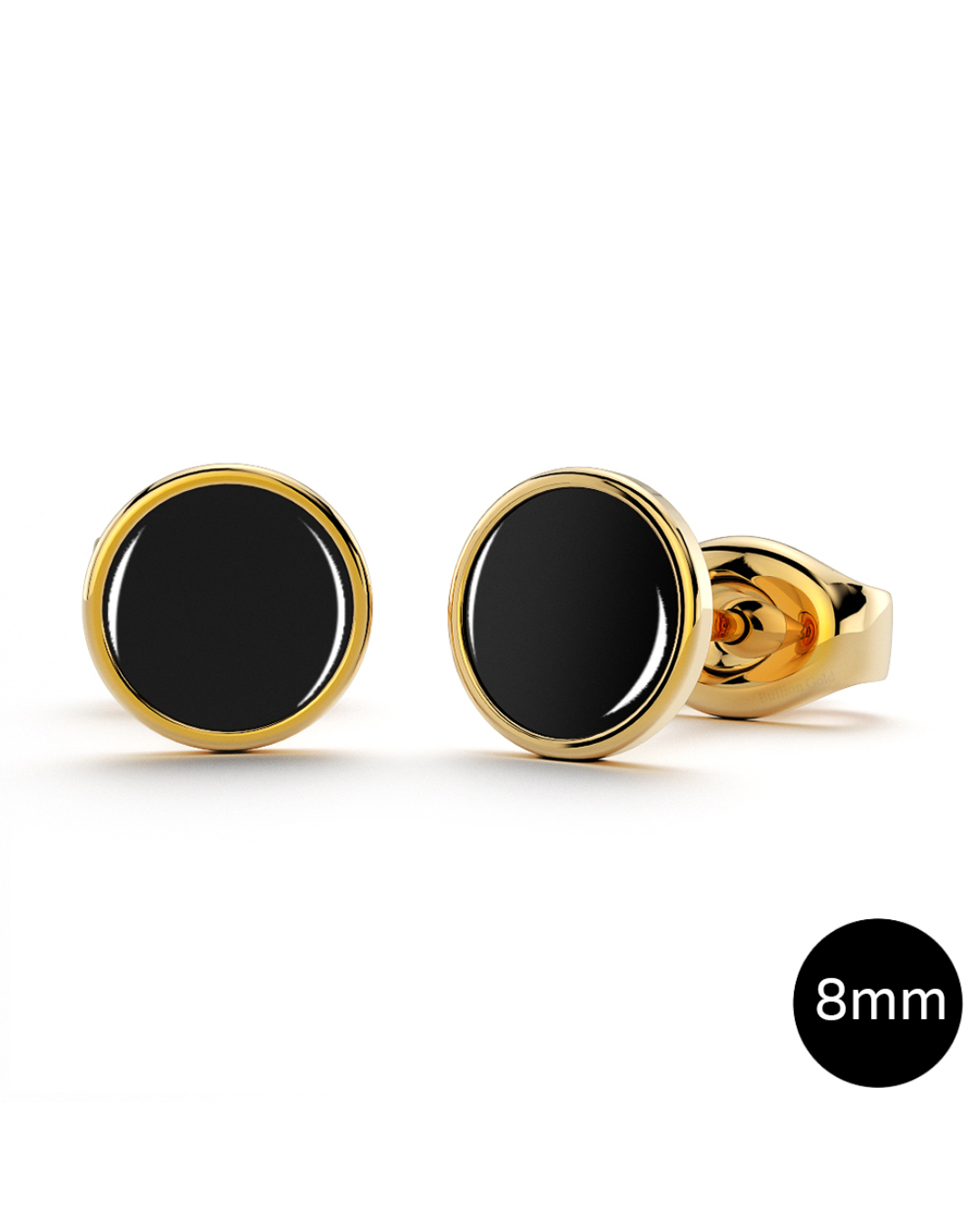 Enhance your look with these classic 8mm studs made of 18ct gold layered stainless steel with black painted enamel. Wear this comfy pair anytime, anywhere!