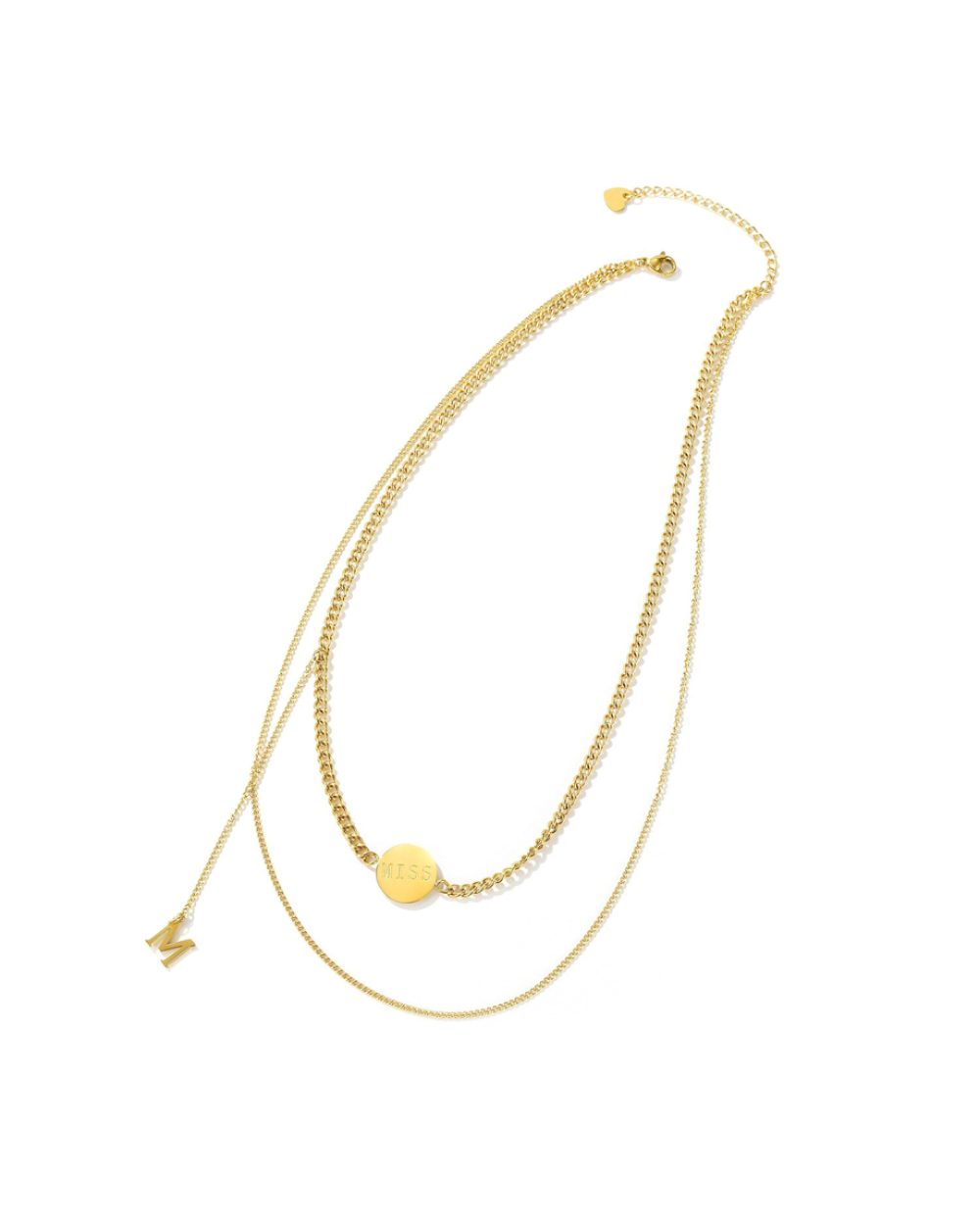 A stylish and fashionable multilayer necklace with M letter hanging charm with engraved wording MISS on round pendent. High-quality material is comfy to your skin.