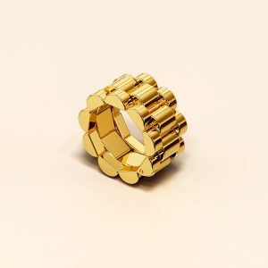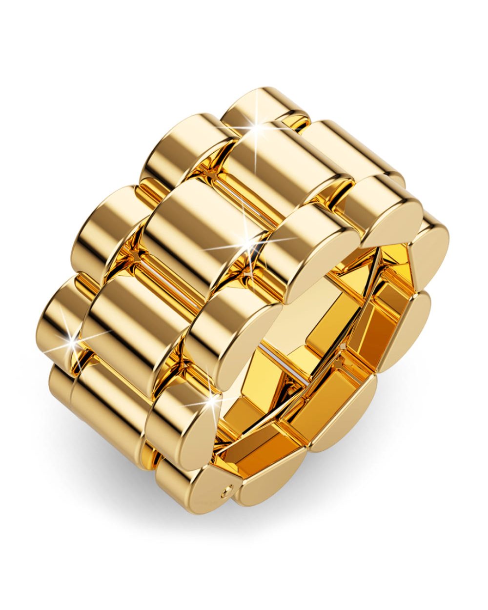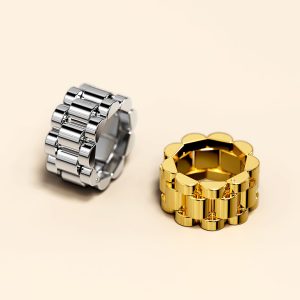 This contemporary take on a classic wide ring is designed to be just as versatile. Wear it alone as part of a personal ring stack or team it with your favorite mix of stacking jewelleries for an extra-special look. Cast from stainless steel, this elegant band ring is crafted for minimalism and maximum style with watch-like oyster band details that wrap elegantly around your finger.