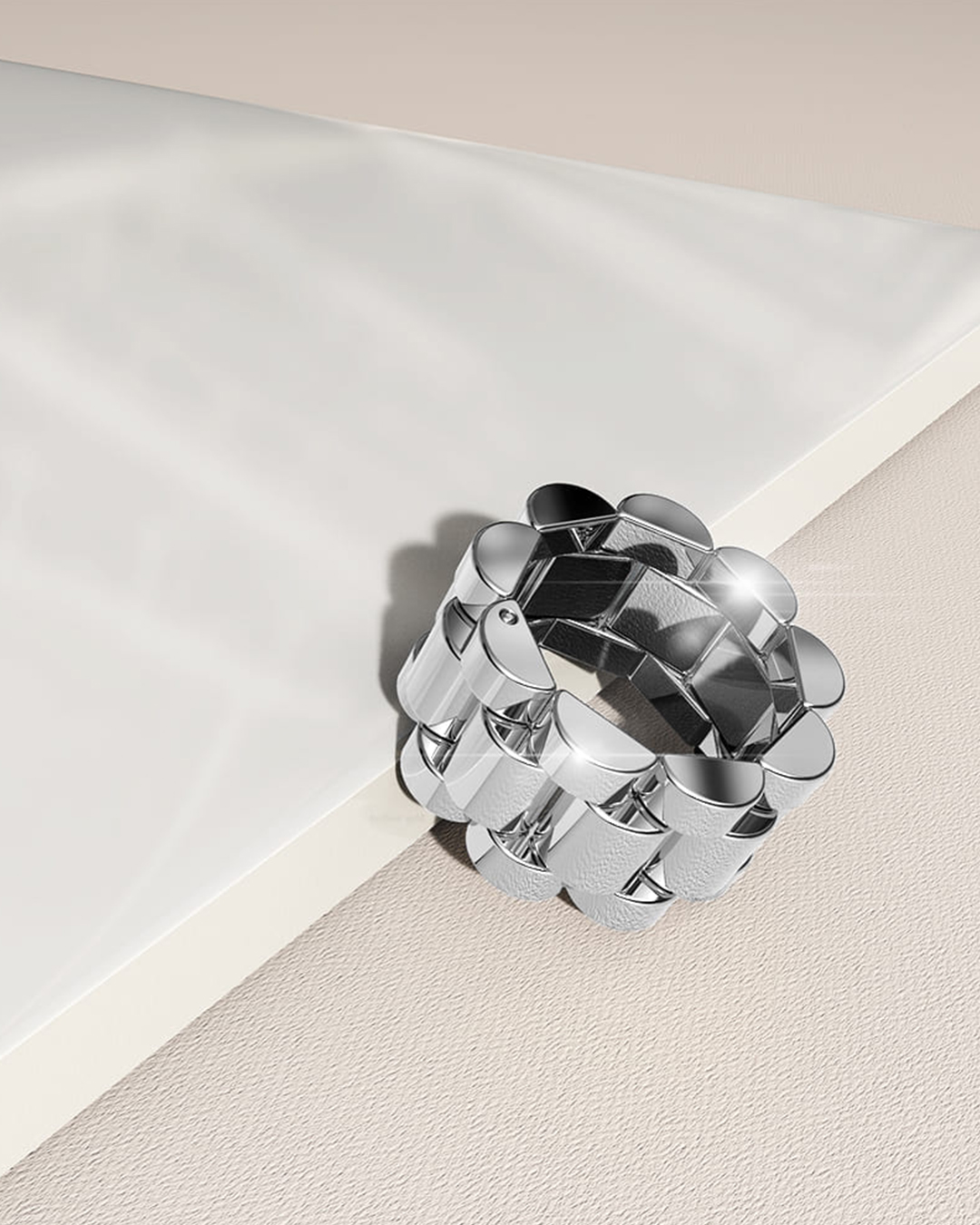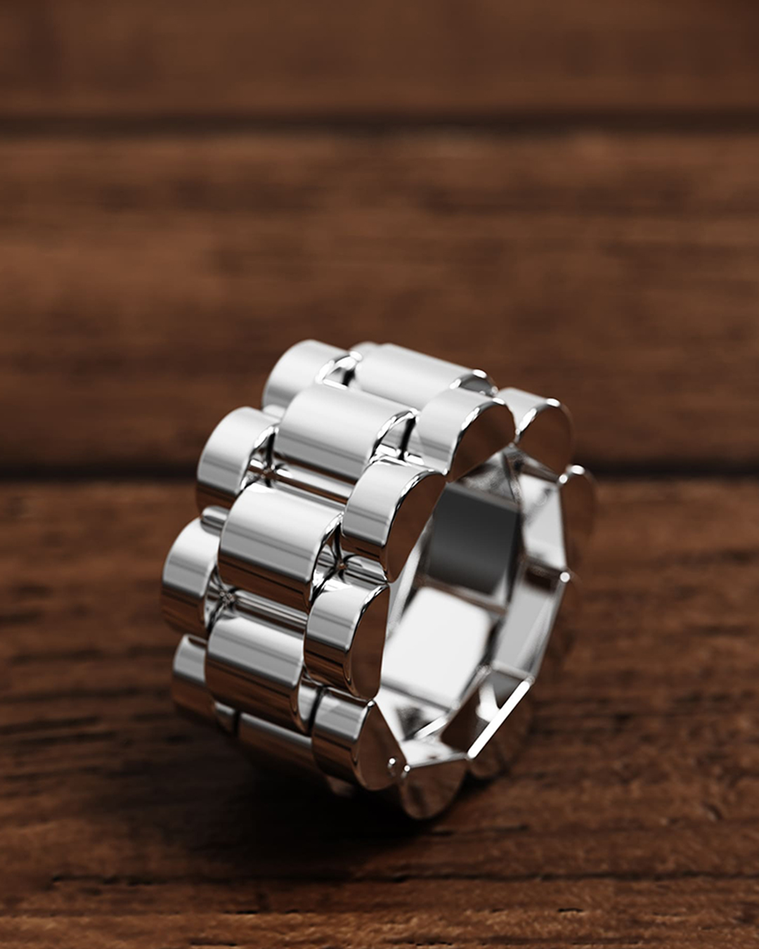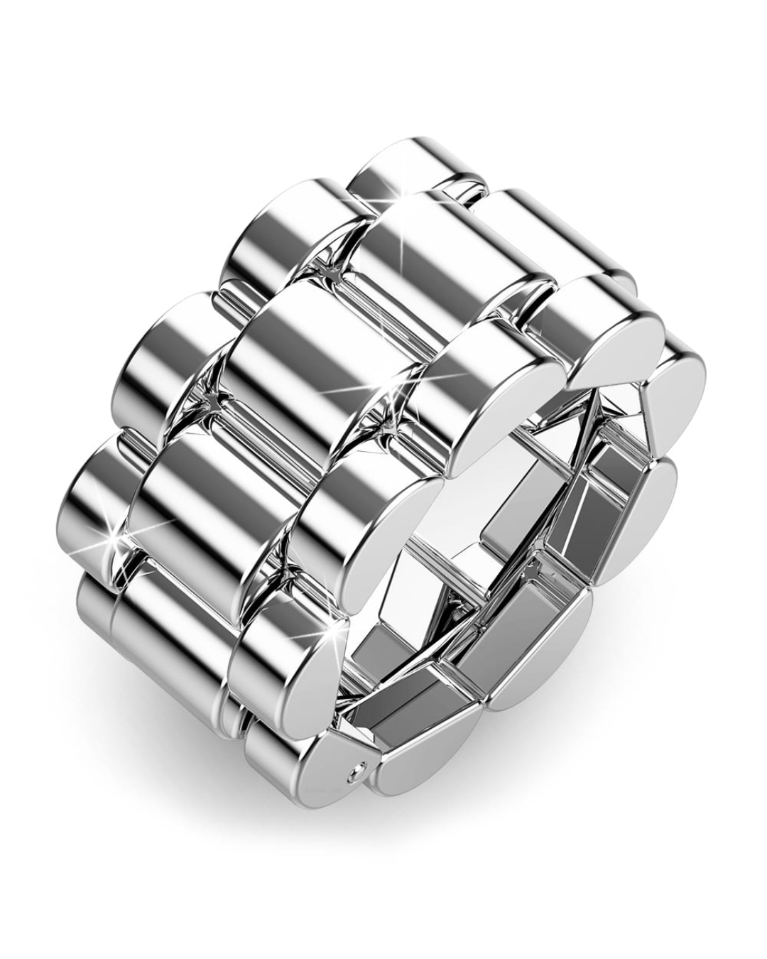 This contemporary take on a classic wide ring is designed to be just as versatile. Wear it alone as part of a personal ring stack or team it with your favorite mix of stacking jewelleries for an extra-special look. Cast from stainless steel, this elegant band ring is crafted for minimalism and maximum style with watch-like oyster band details that wrap elegantly around your finger.