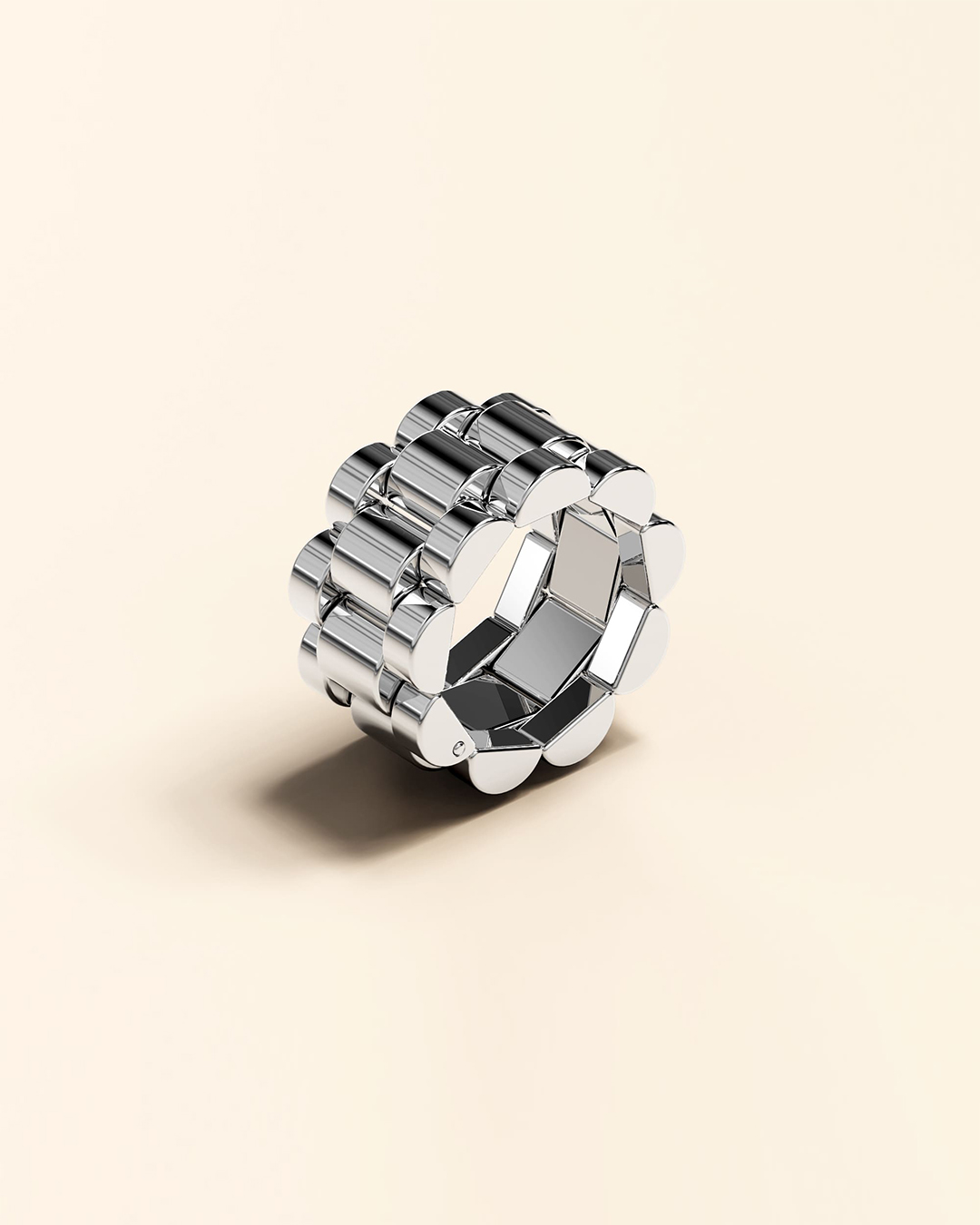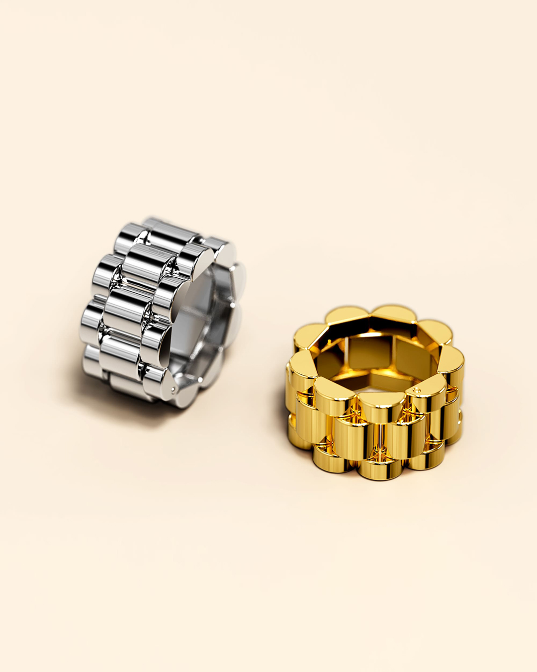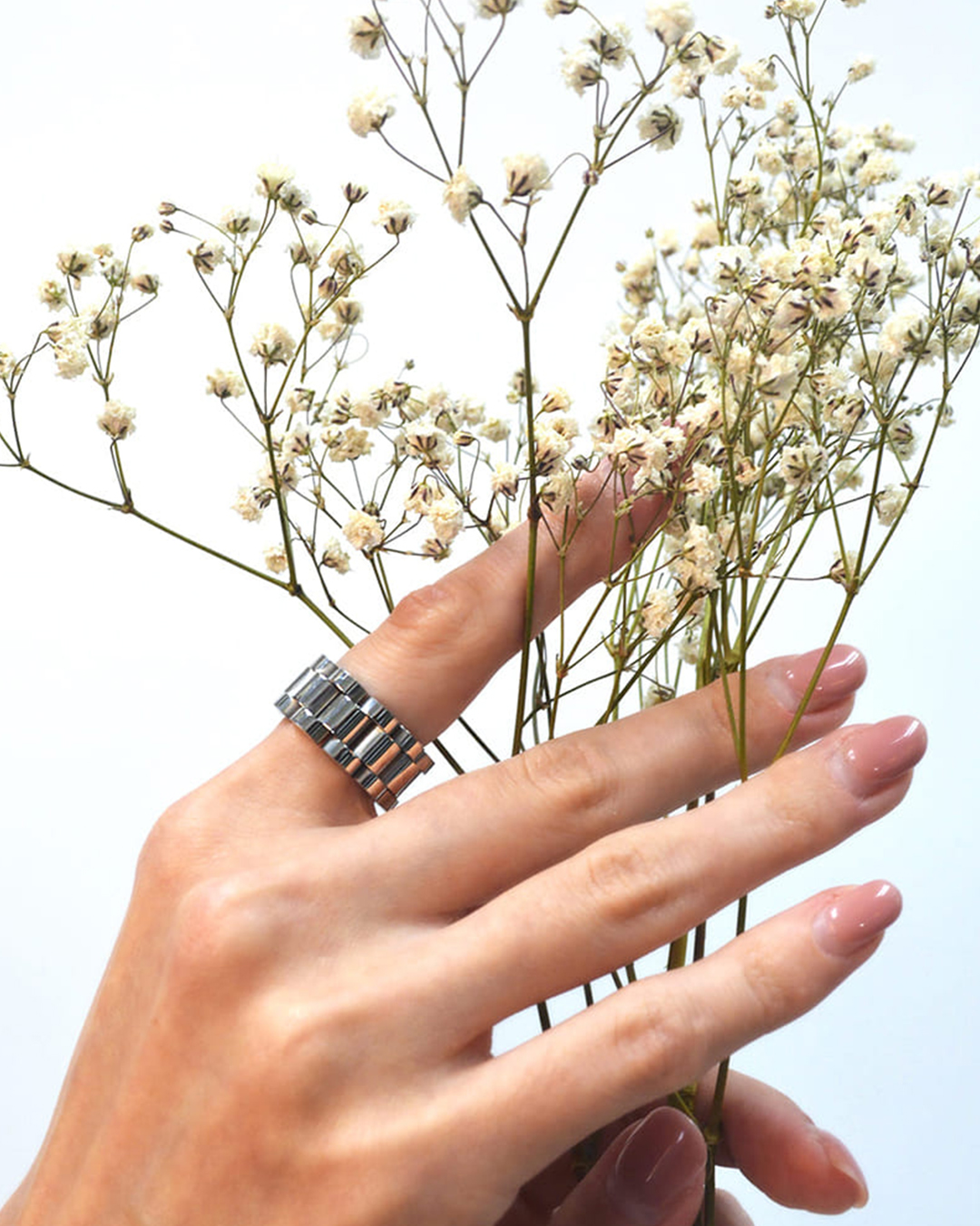 This contemporary take on a classic wide ring is designed to be just as versatile. Wear it alone as part of a personal ring stack or team it with your favorite mix of stacking jewelleries for an extra-special look. Cast from stainless steel, this elegant band ring is crafted for minimalism and maximum style with watch-like oyster band details that wrap elegantly around your finger.