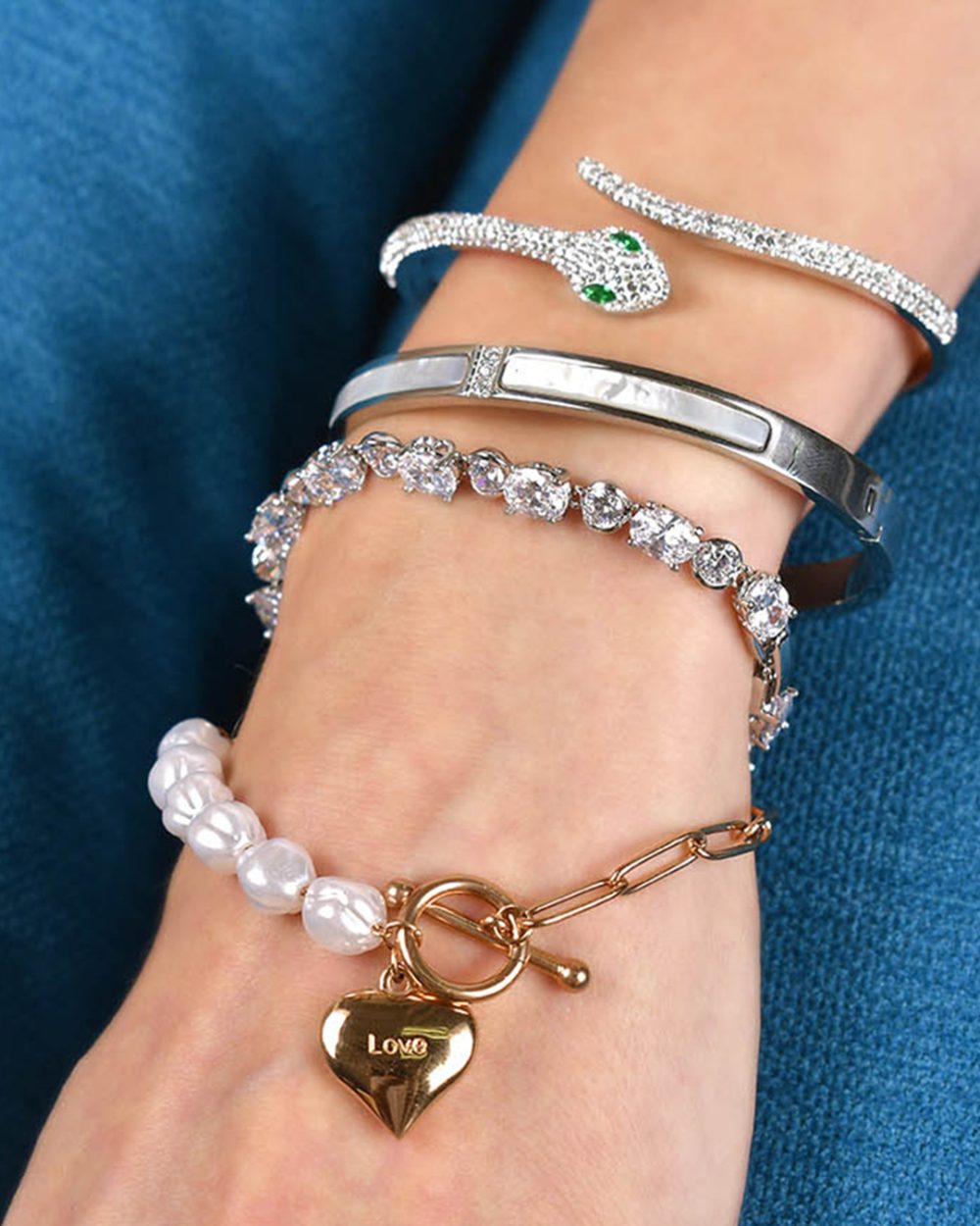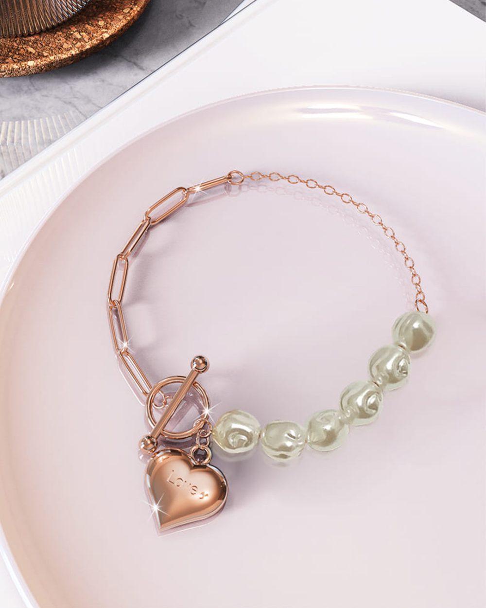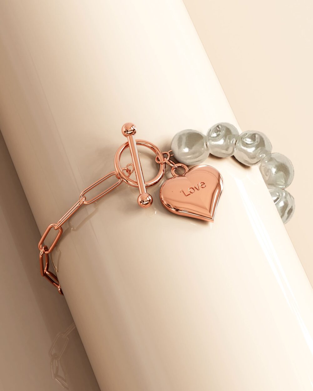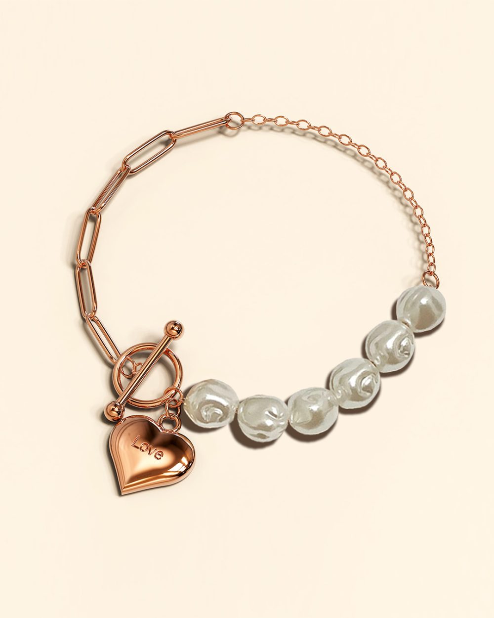 Our Pearl Paper Clip Chain Heart Rose Gold Layered Stainless Steel Bracelet is simply a masterpiece. The 18ct Rose Gold plating adds an extra touch of luxury and the heart-shaped paper clip design at the end of its chain of pearls is perfect for those whom loves to be bold with their jewellery. Whether you’re dressing up or dressing down, this bracelet will always look perfect for any occasion!