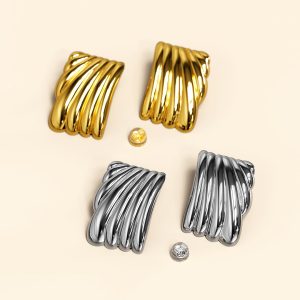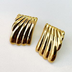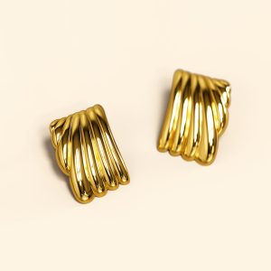 These Pleated Angel Gold Layered Stud Earrings are a modern take on a classic design. Inspired by the delicate pleats of an angel’s wings, these earrings offer a touch of ethereal elegance. The gold finish adds a luxurious glow, making them perfect for elevating any outfit.