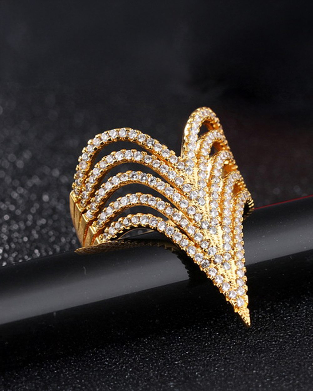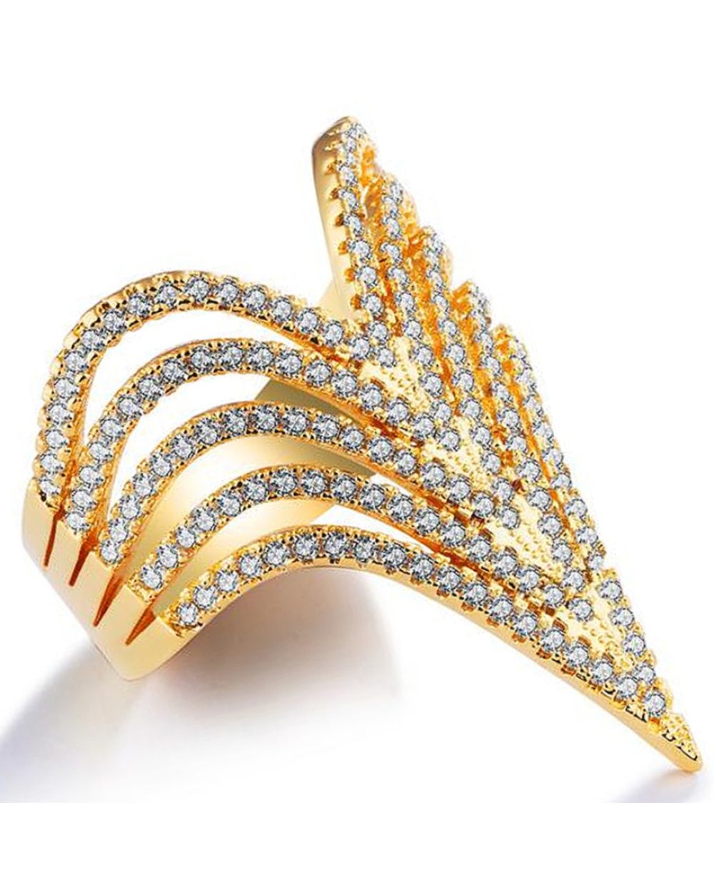 Wear a classy yet elegant style with this fashionable ring made of 18K Gold layered alloy. Add shine to your fingers with dazzling round-cut zirconias adorned on its sleek and sturdy band. A gorgeous glow to any outfit.