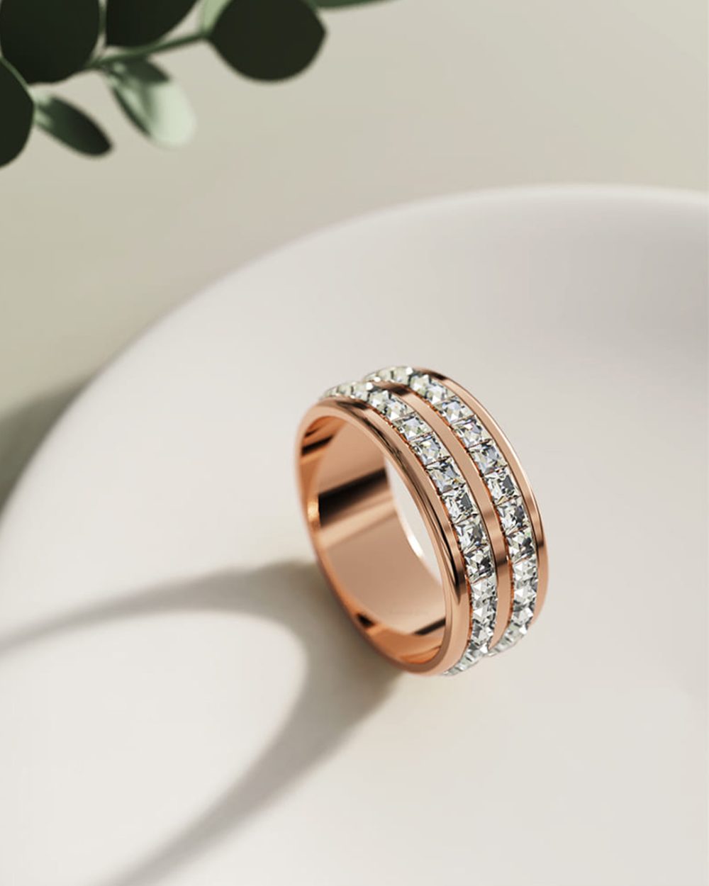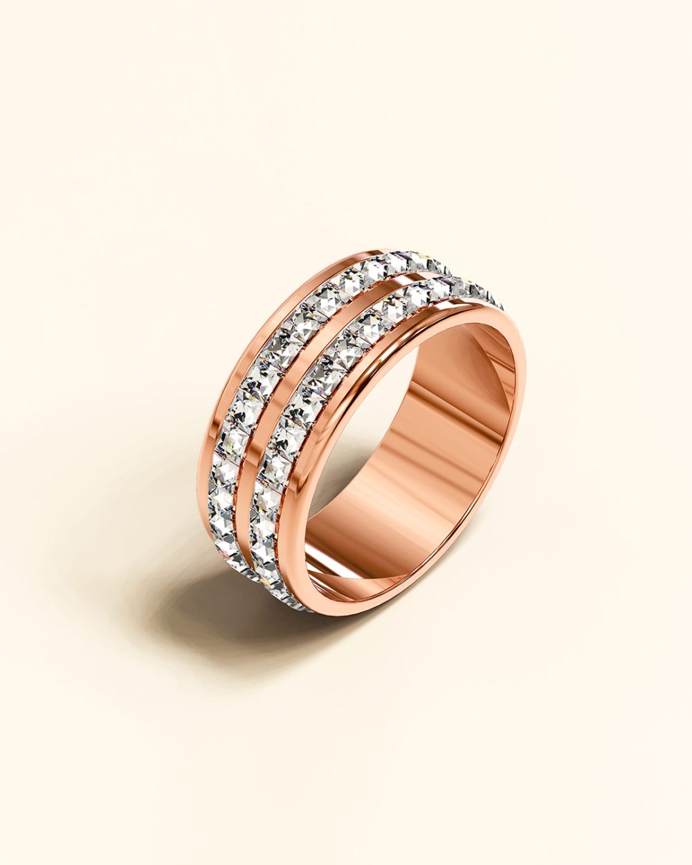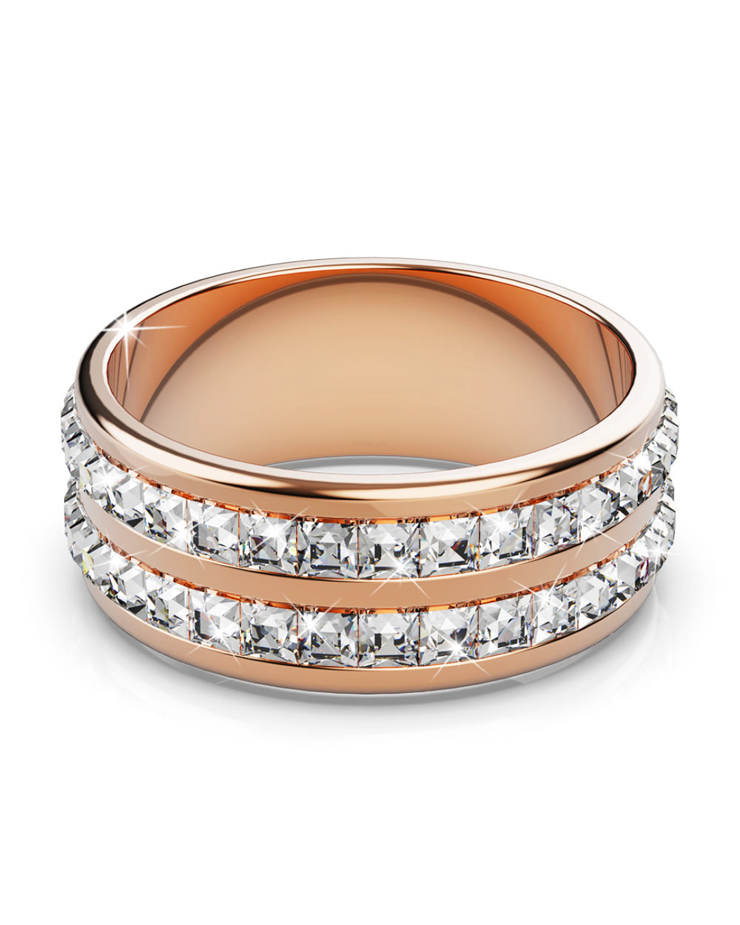 Opt for classic minimalism with this Princess Cut Stunner Ring In Rose Gold. The delicate design is decorated with 2 rows of princess-cut channels for that radiant look. Elegant and glamorous, once you put this stunning crossover ring on, you won’t want to take it off.