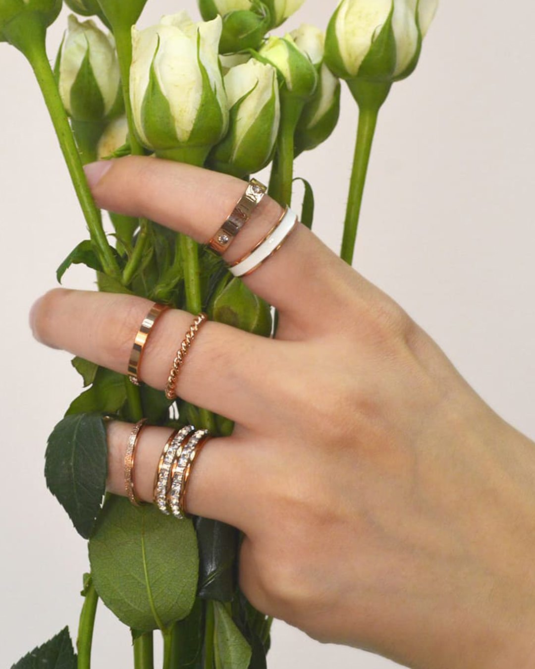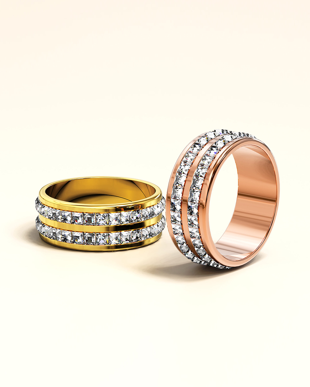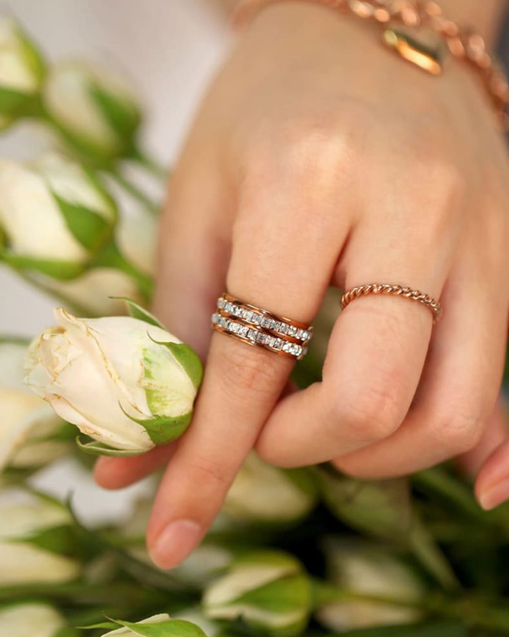 Opt for classic minimalism with this Princess Cut Stunner Ring In Rose Gold. The delicate design is decorated with 2 rows of princess-cut channels for that radiant look. Elegant and glamorous, once you put this stunning crossover ring on, you won’t want to take it off.