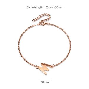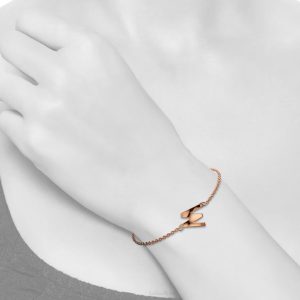 Bold Alphabet Letter Initial Charm Bracelet in Rose Gold Tone – W