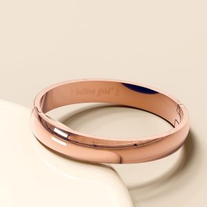 This Serena Solid Flat Hinged Bangle in Rose Gold bracelet elevates your outfit with its refined and sophisticated design. The flat profile of this bangle is layered with 18k rose gold plating, making it ideal for everyday wear. The sleek minimalist bangle features a hinged opening that makes it easy for you to wear it on your own. This bangle is perfect to add to your stack of favourite bangles and bracelets.
