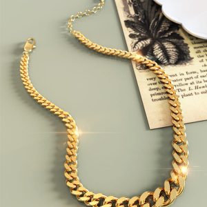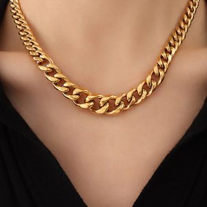 If you’re looking for a necklace that is bold yet understated, this dressy piece is for you. Featuring 18k gold layered stainless steel cuban chain link, the perfect partner to white T-shirts, cashmere jumpers, denim, or eveningwear – essentially anything goes.