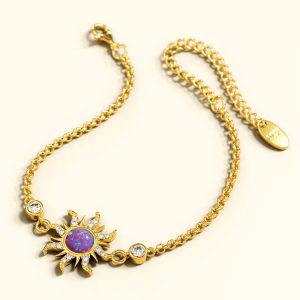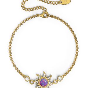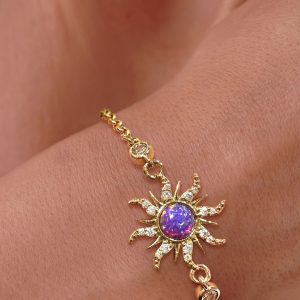 Radiate fairytale charm and opalescent beauty with our Rapunzel Opal Sun Bracelet. This enchanting piece features a luminous purple opal set within a delicate sunburst design, capturing the warmth and magic of the sun. Perfect for adding a touch of whimsy to your everyday style or as a unique accent for special occasions, the Rapunzel Opal Sun Bracelet is a delightful statement piece you’ll treasure forever.